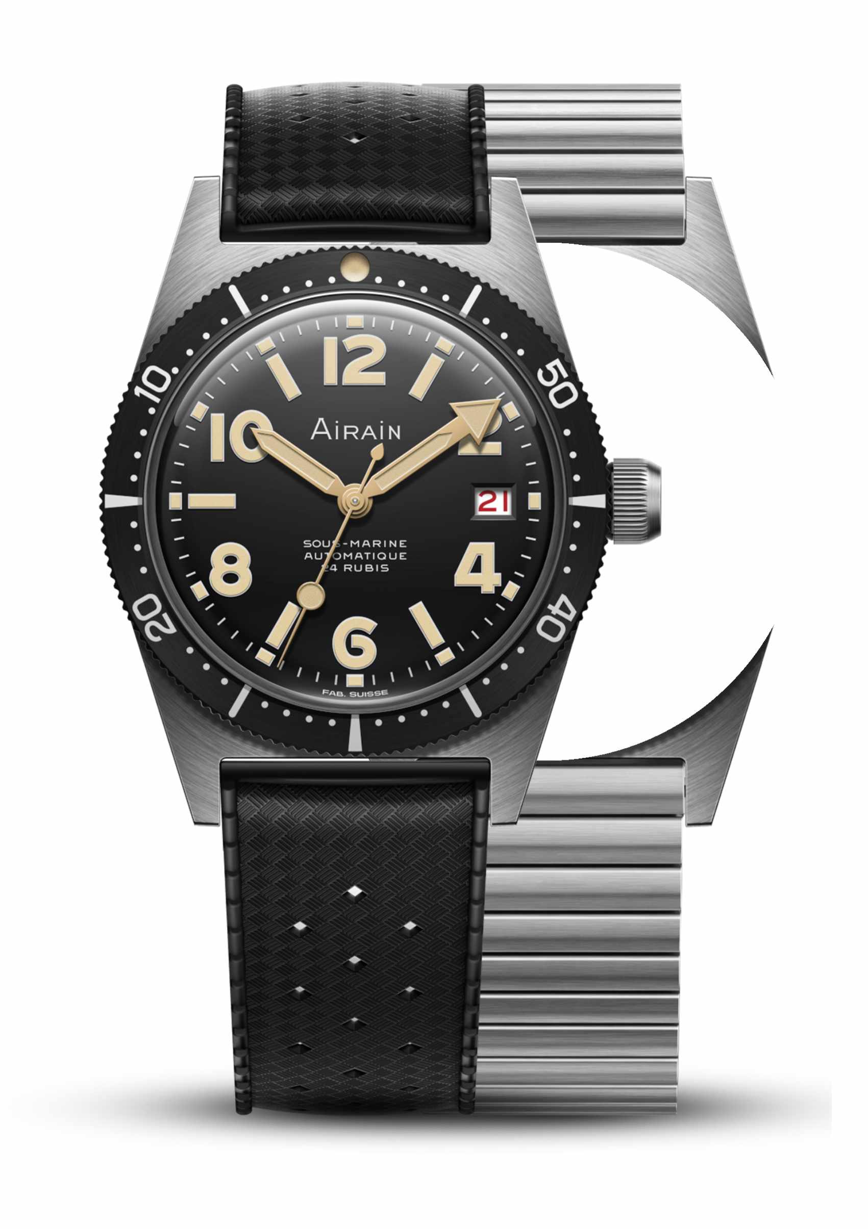 In 1962, Airain launched the original Sous-Marine, a diver's watch that captured the adventurous spirit of its era. Today, the Sous-Marine collection revives this icon with modern enhancements while remaining true to its vintage aesthetic. Designed to withstand the depths of the ocean and the challenges of everyday life, the Sous-Marine embodies the pinnacle of durability, precision, and style.