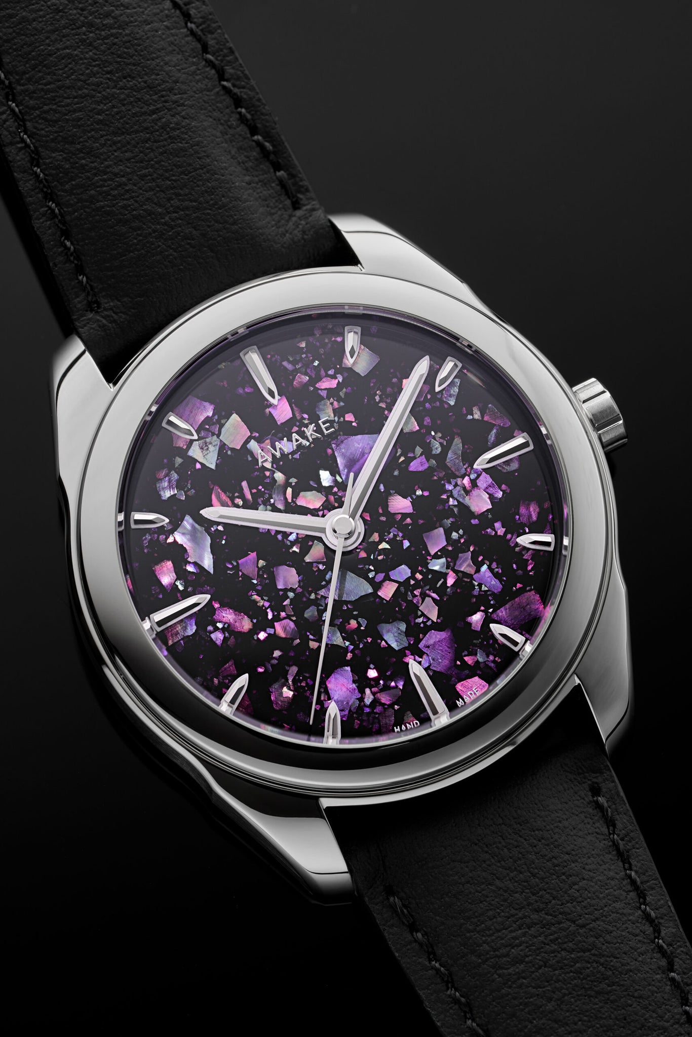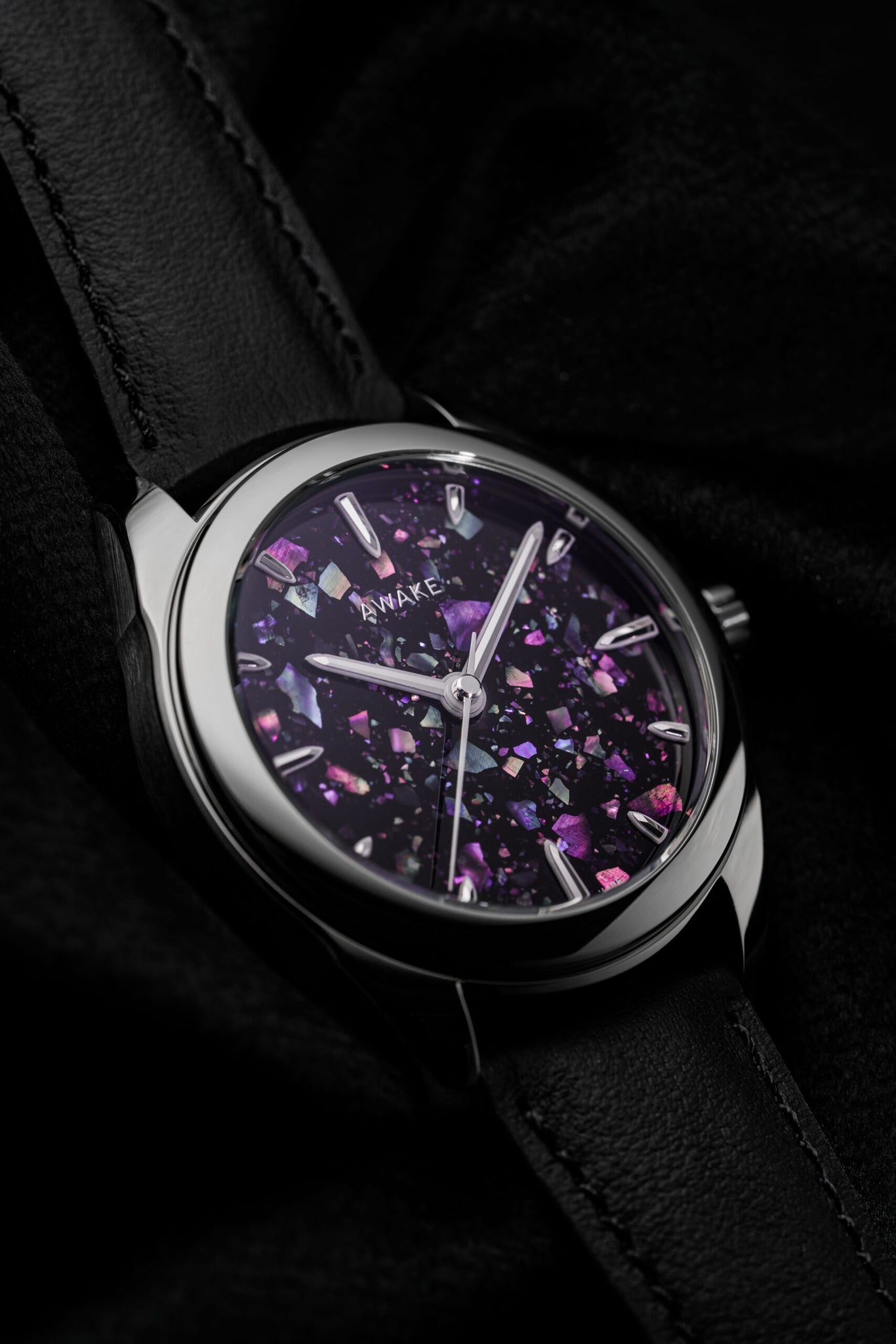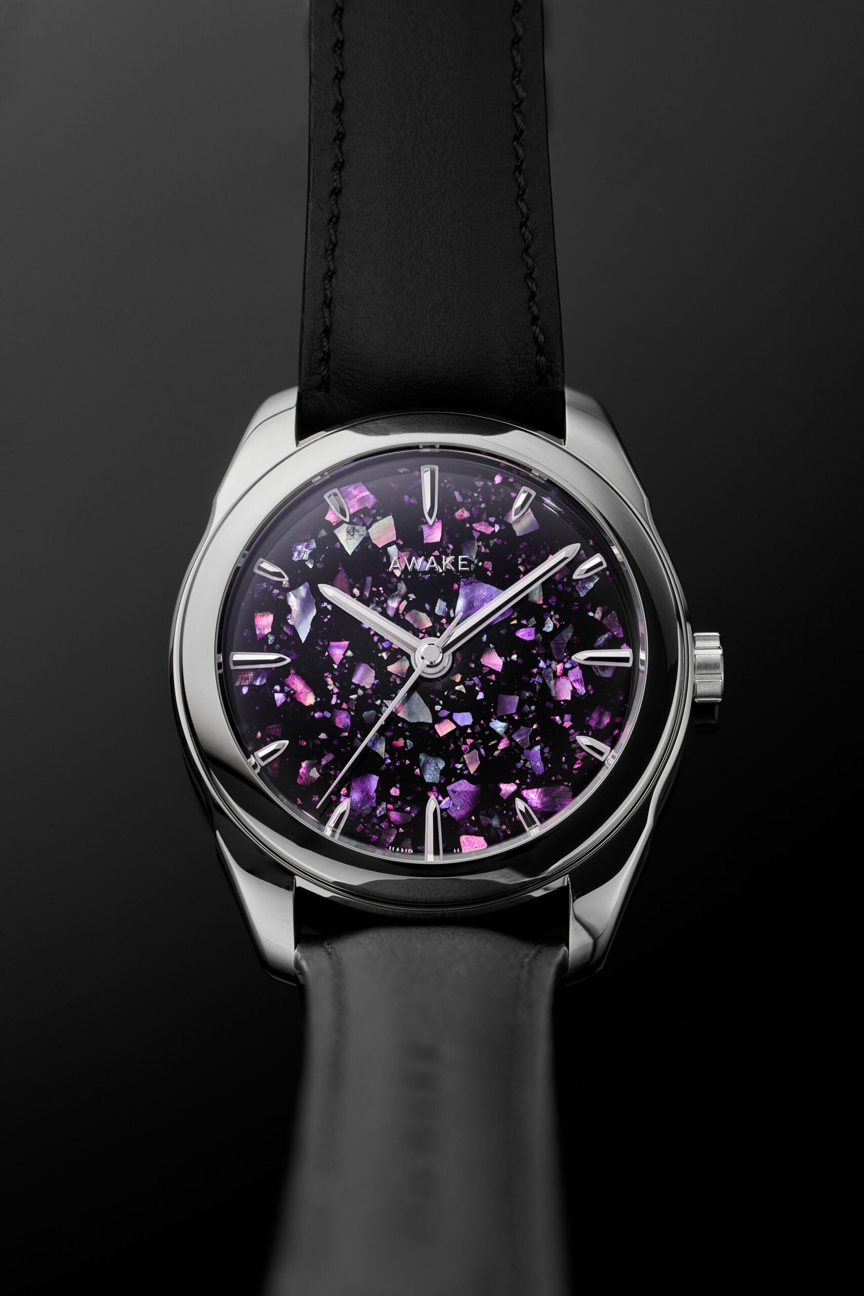 - Awake Son Mai Fragments Pink: Pink-Violett schimmerndes Zifferblatt