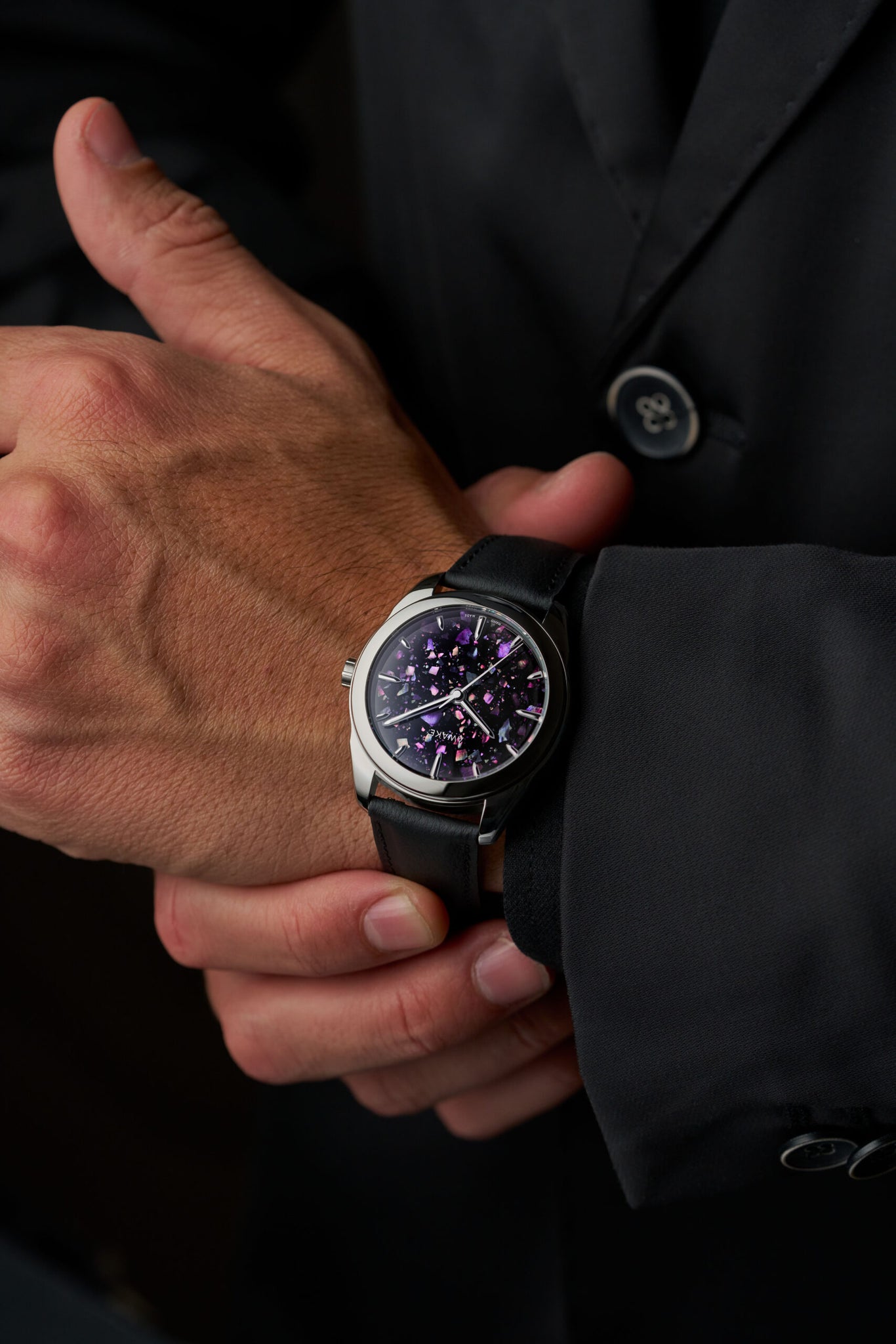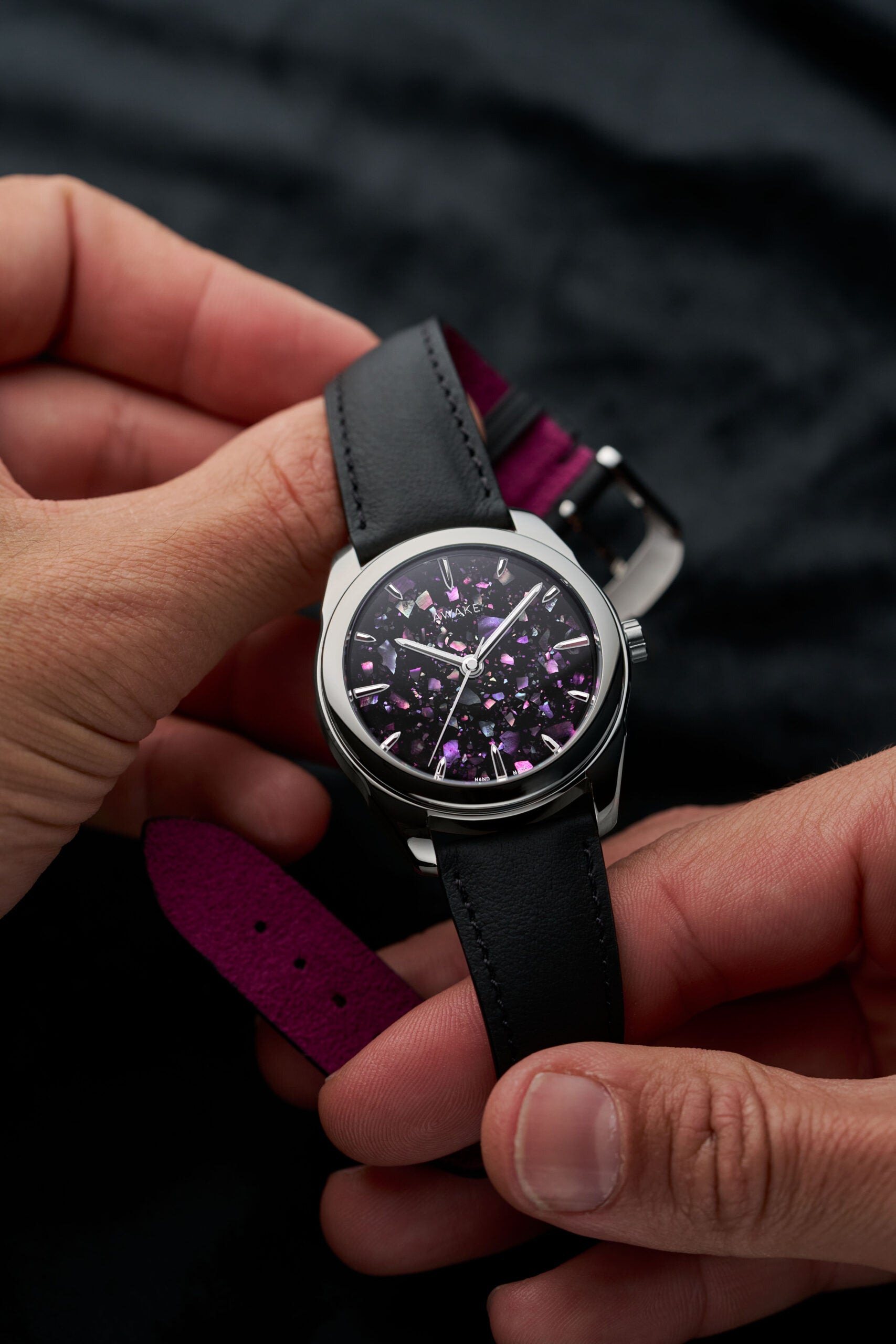 Each Son Mai dial is unique, inviting the eye to linger and lose itself in the light reflections, colors, and textures.