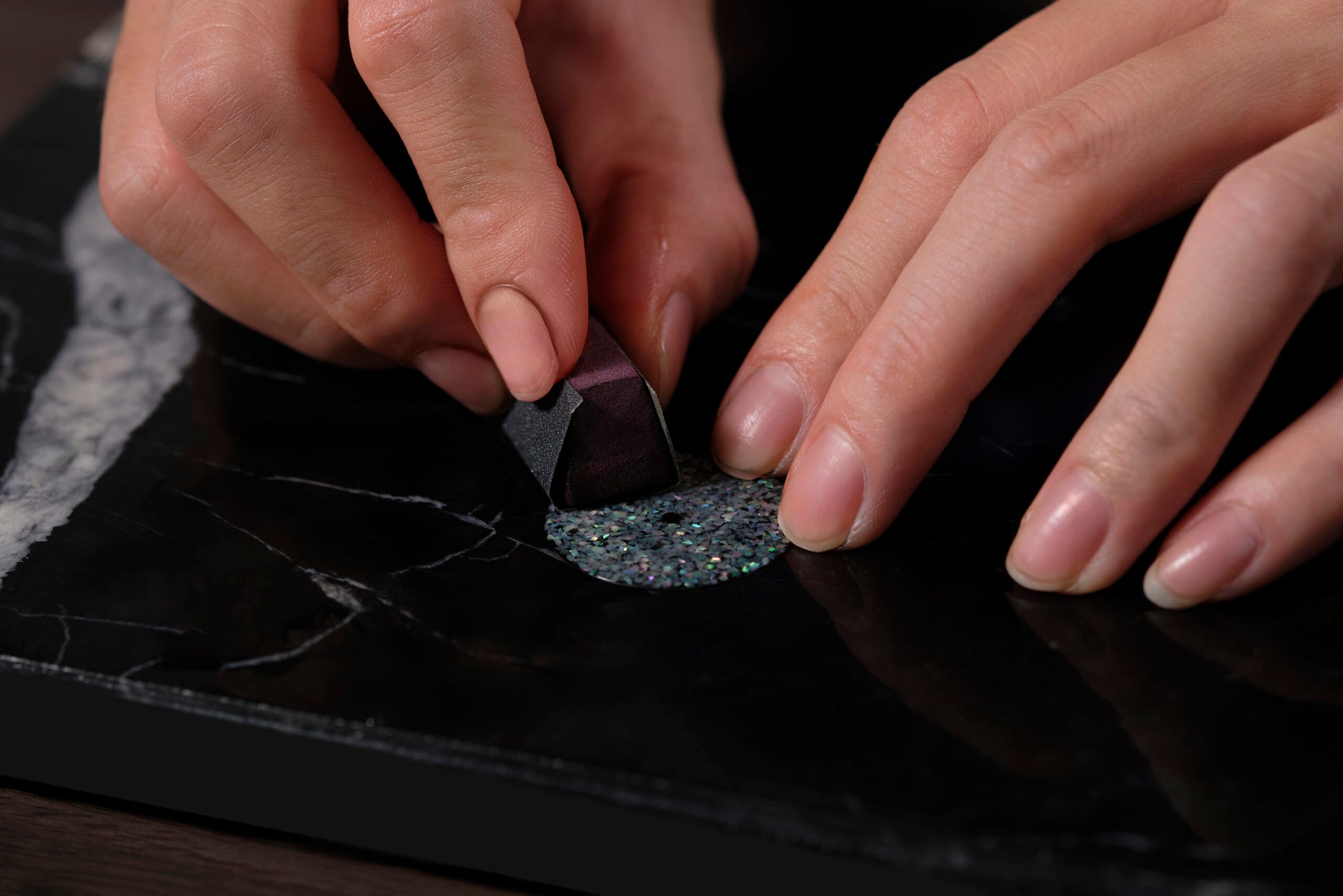 Each dial begins with a base coat of pure silver leaf, applied by hand – a luminous canvas for what is to come.