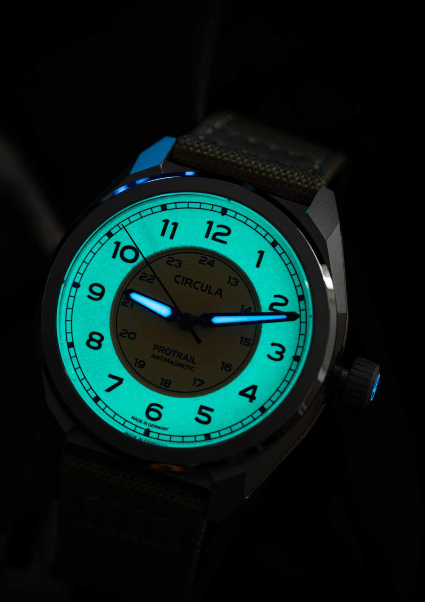- Kreisstruktur innen, matt außen, Swiss Super-LumiNova® Leuchtmasse