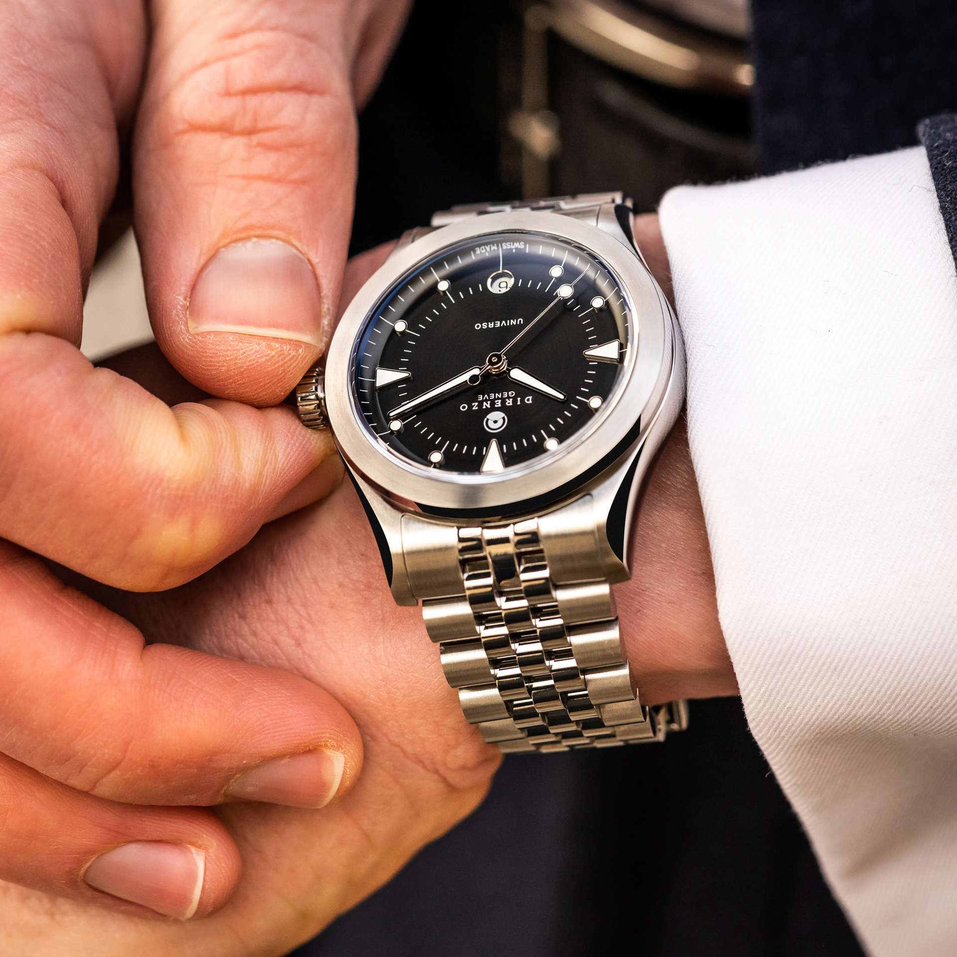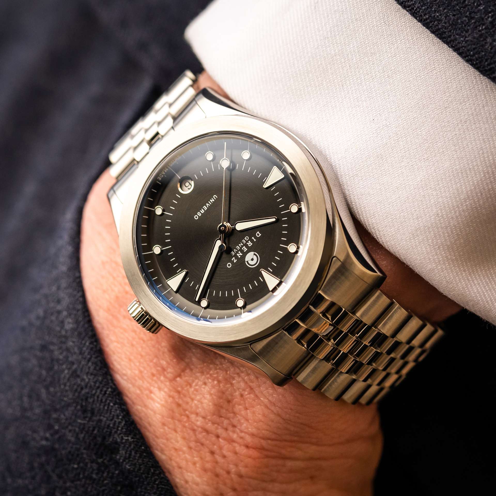 DIRENZO watches are all manufactured in Switzerland and, of course, meet all the requirements for the prestigious "Swiss Made" label. To preserve the perfect, clean design, Direnzo deliberately omits the "Swiss Made" imprint on the dial. Instead, this quality label is engraved on the case back.