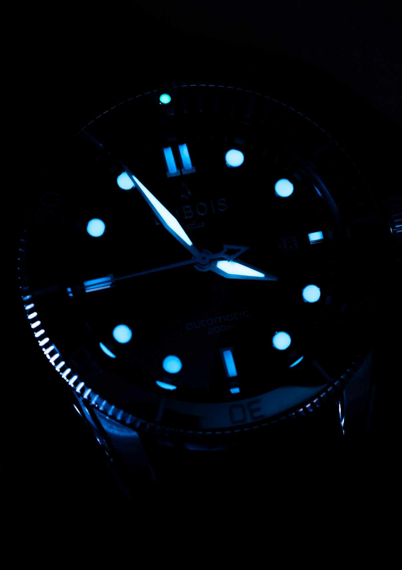 - Leuchtpunkt auf Lünette auf 12 Uhr