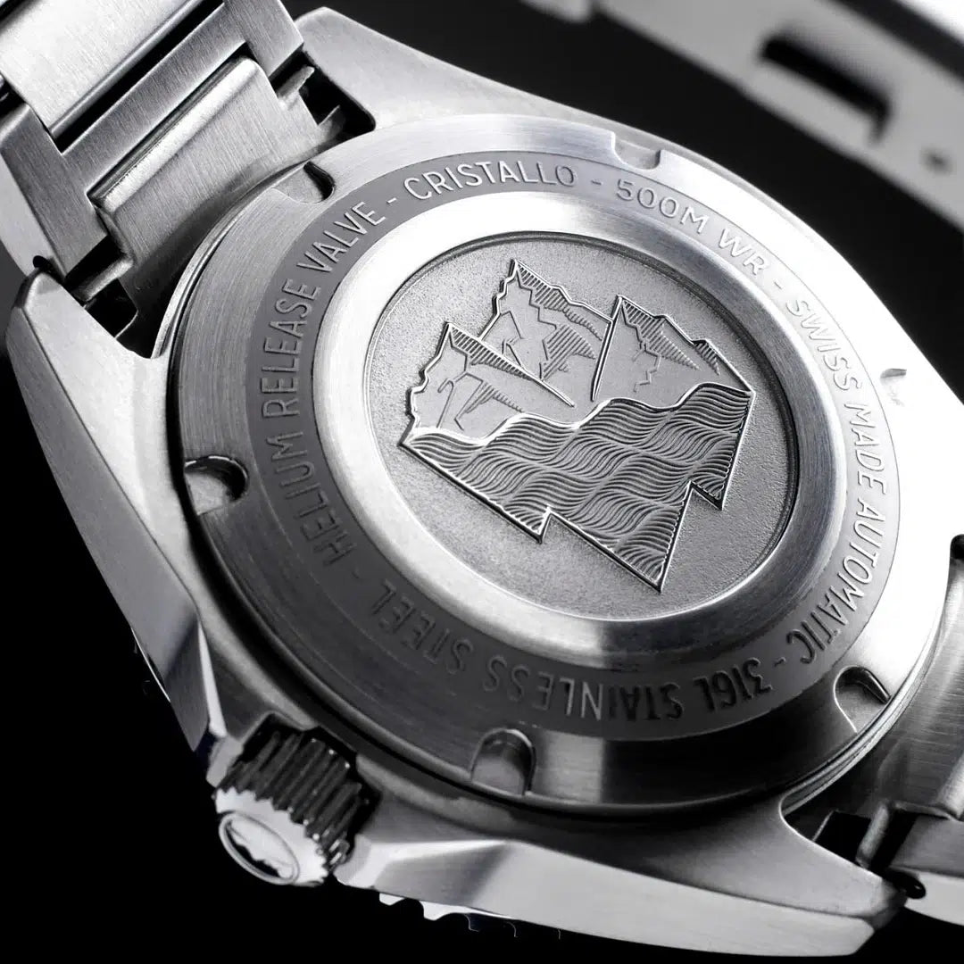 Cristiano and Nicola dedicated their creations to their love for their homeland's Dolomites. The crowns of their watches feature an image of the mountains, and the second hands are inscribed with the region's colors: red, white, and red.