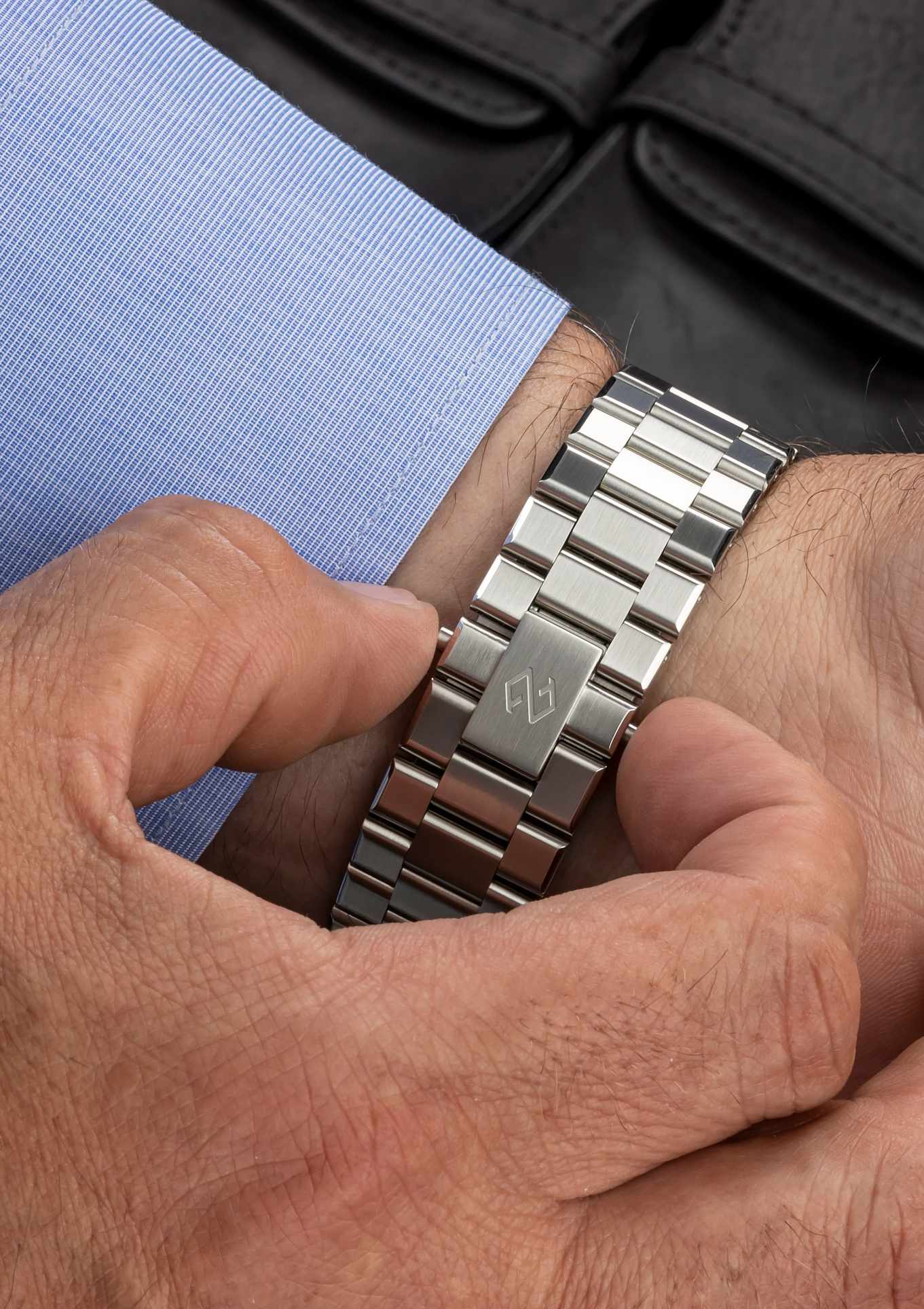 - Edelstahlarmband mit Schnellwechselsystem und Mikro-Verlängerungs-Funktion