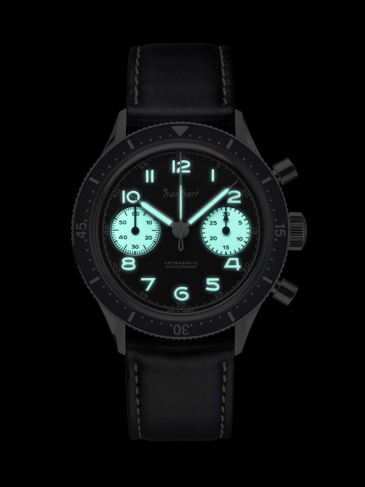 During the war, watch production had to be suspended in favor of time fuses for torpedoes. Even after the war, Hanhart was unable to resume production immediately due to a break lasting from 1945 to 1948. Pilot's chronographs were again produced starting in 1948.