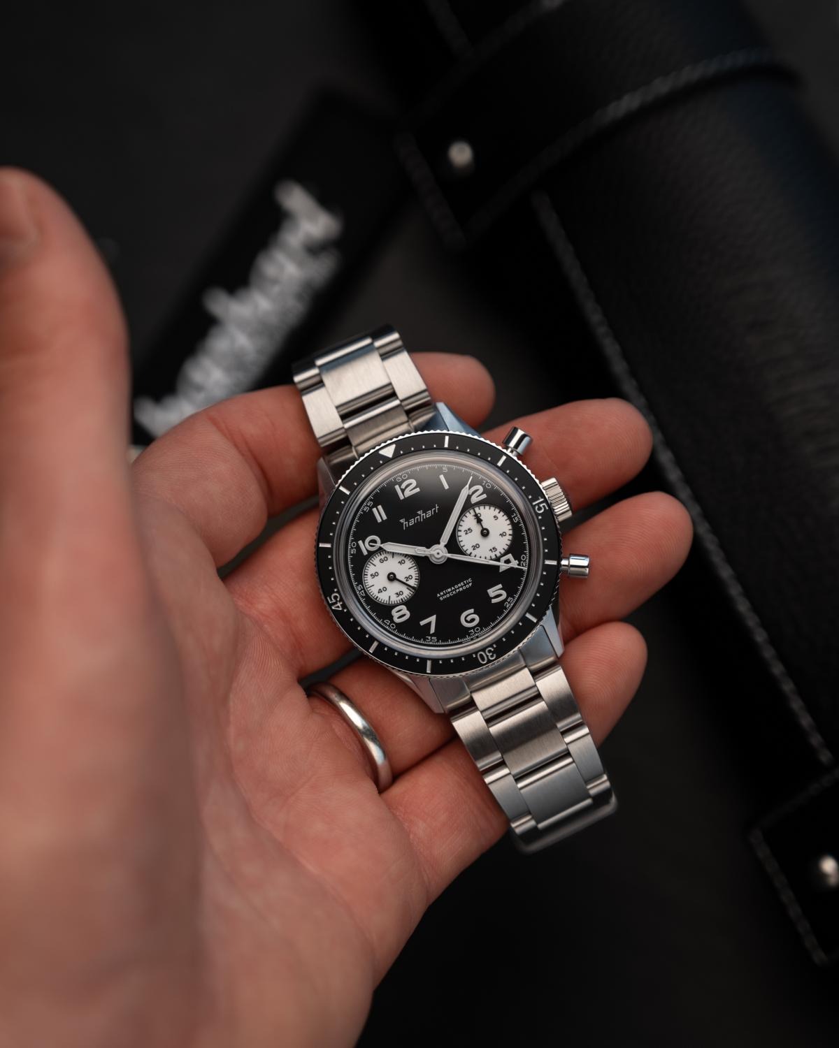 - Pull-Push-Krone mit distinktiven Hanhart „h“ des historischen Flügellogos