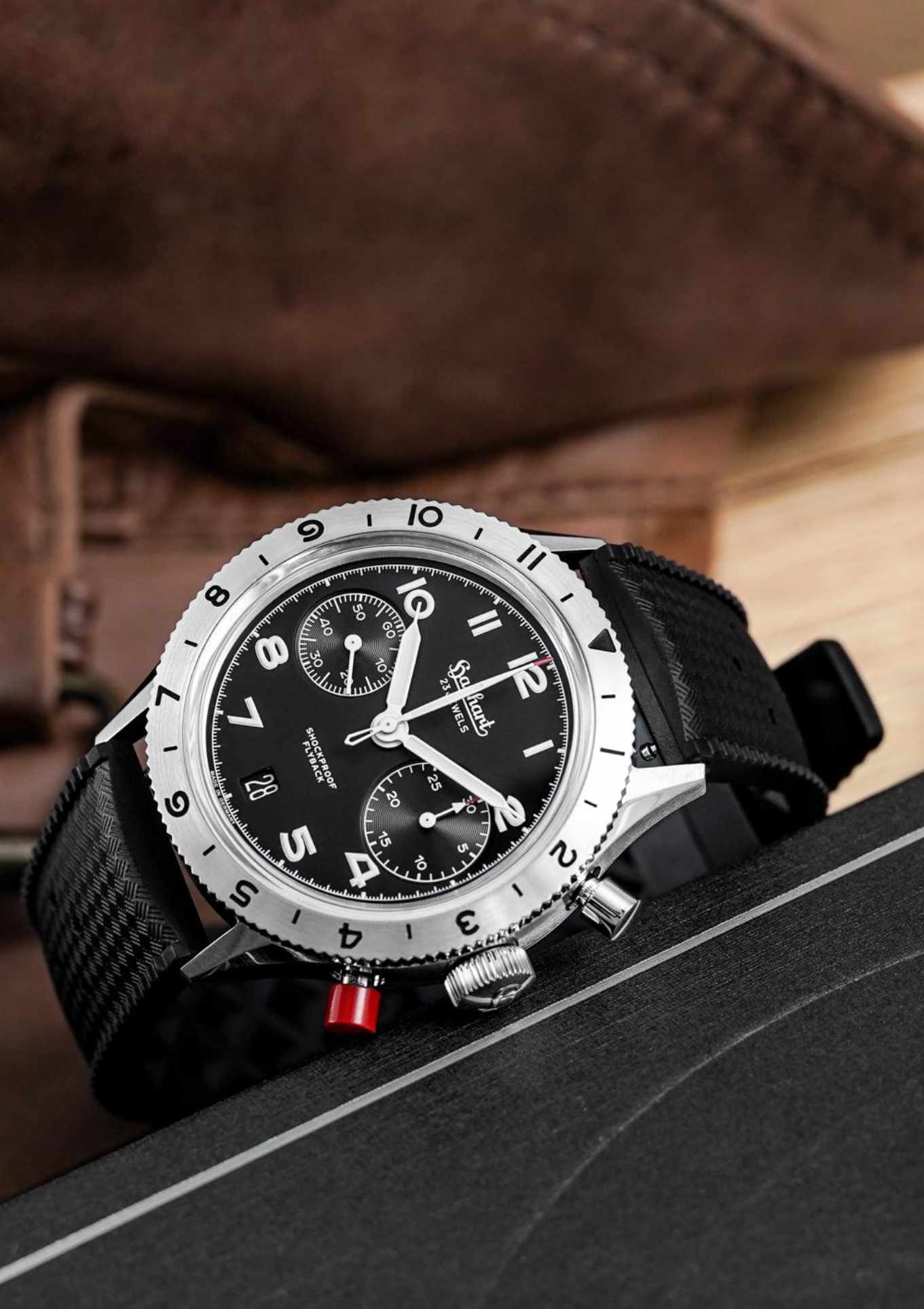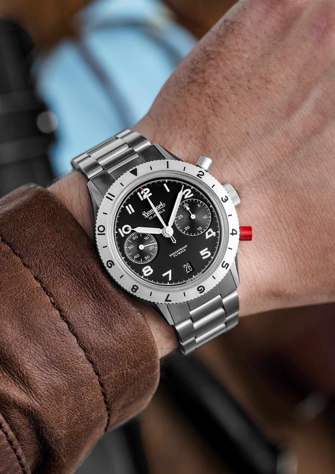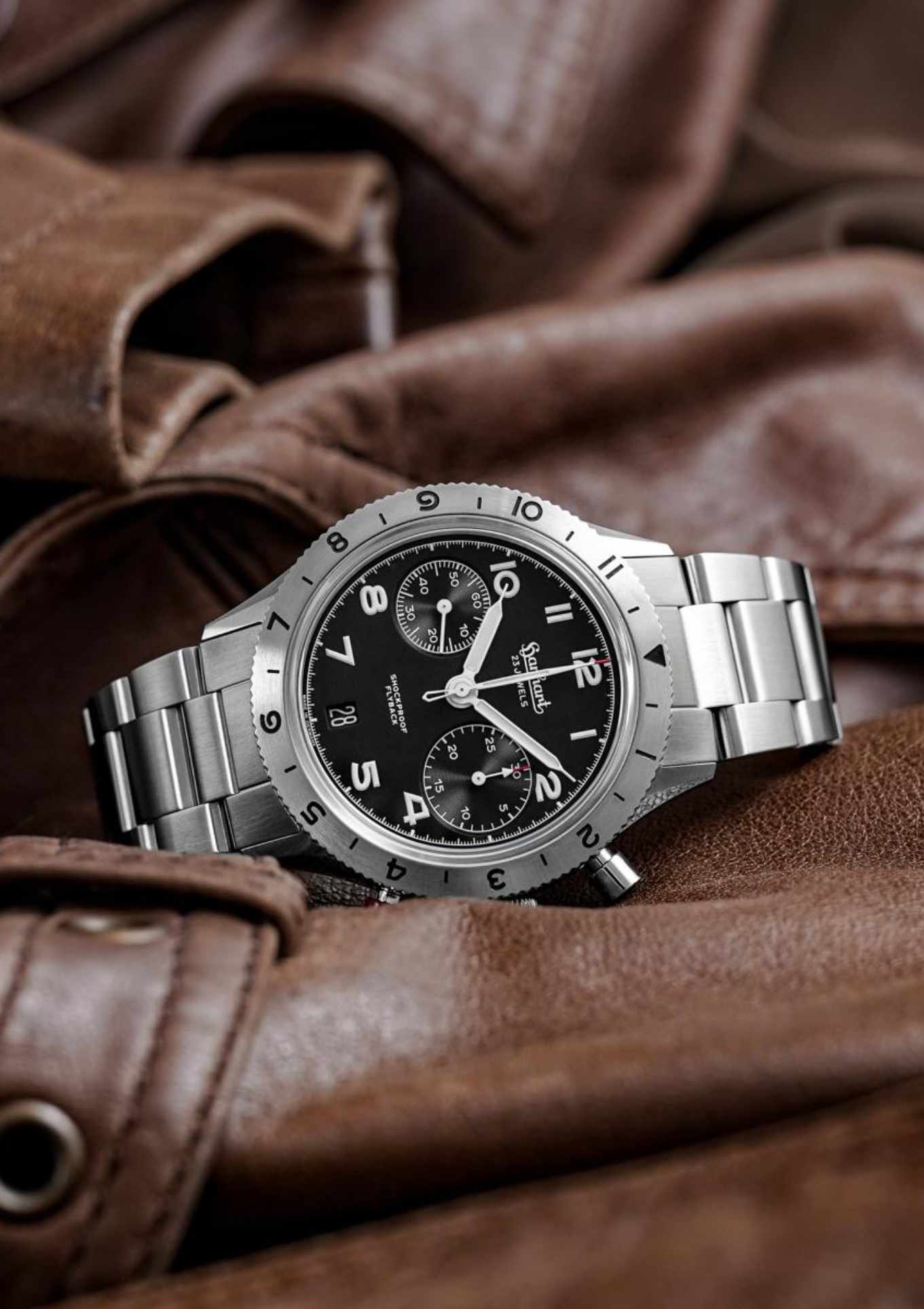 With the rediscovery of traditional watchmaking, Hanhart drew on its own pioneering achievement in the 1990s: In August 1997, at the antiques fair in Furtwangen in the Black Forest, a replica of the legendary Hanhart Pilot's Chronograph from 1939 was presented. It was developed under the aegis of Production Manager Manfred Schwer. All case and dial details of the original were copied with the utmost care, from the old Hanhart lettering to the asymmetrical pusher offset. Furthermore, administration and production were consolidated at the Gütenbach site.