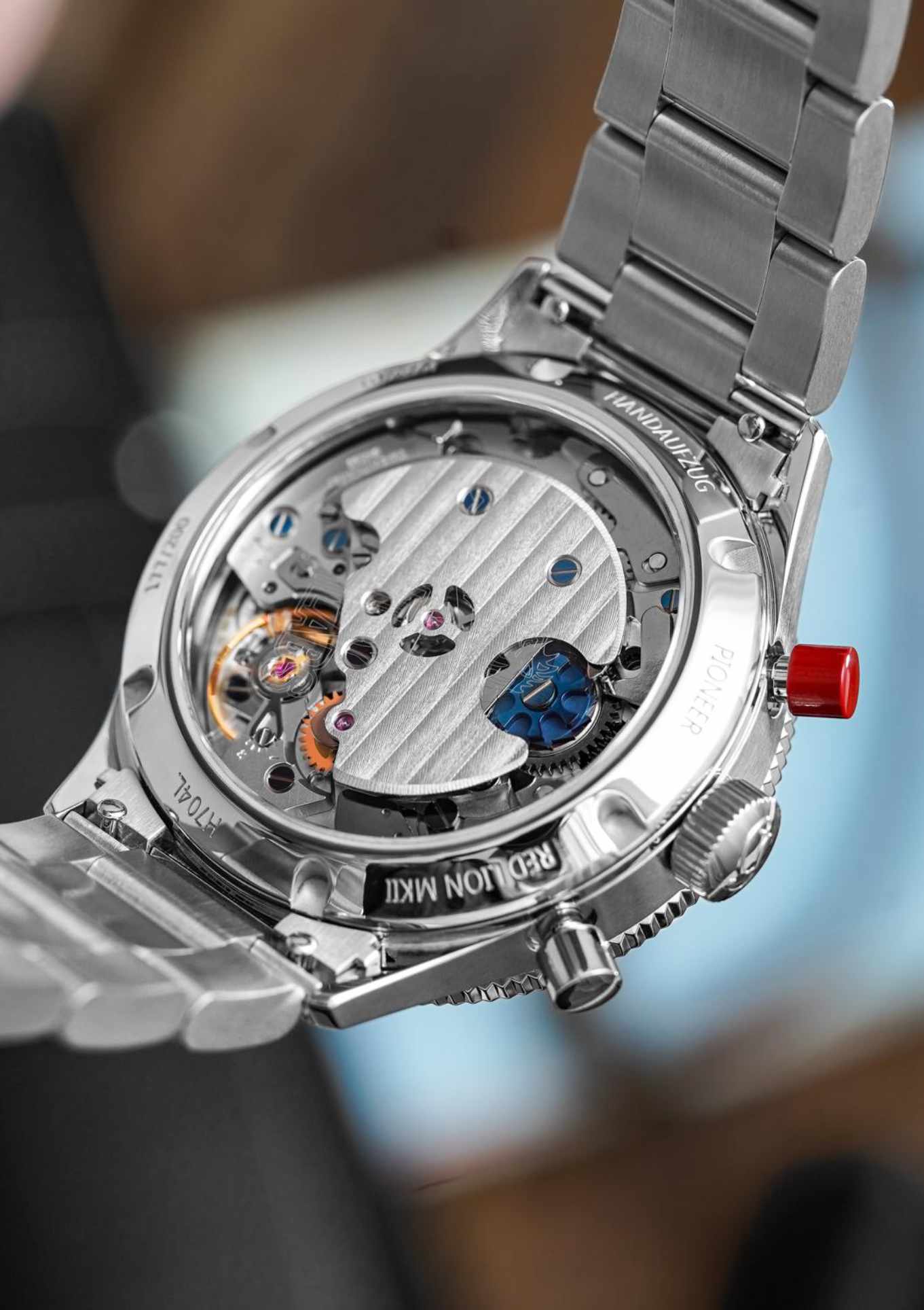 - Die Zeiger und Ziffern der 417ES Hanhart X Gentry Labs Red Lion Mk II sind mit Super- LumiNova beschichtet, um eine optimale Ablesbarkeit bei Tag und Nacht zu gewährleisten