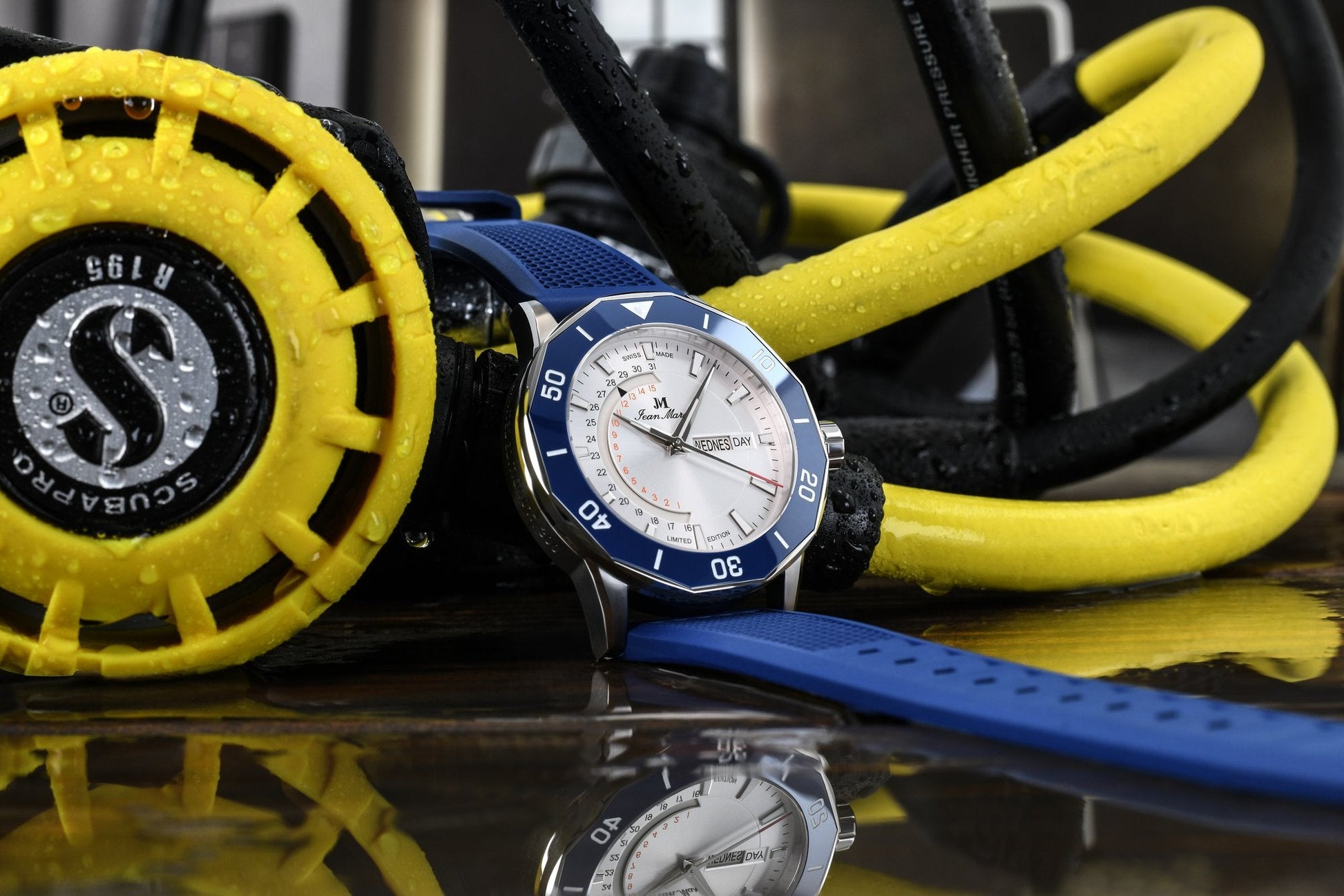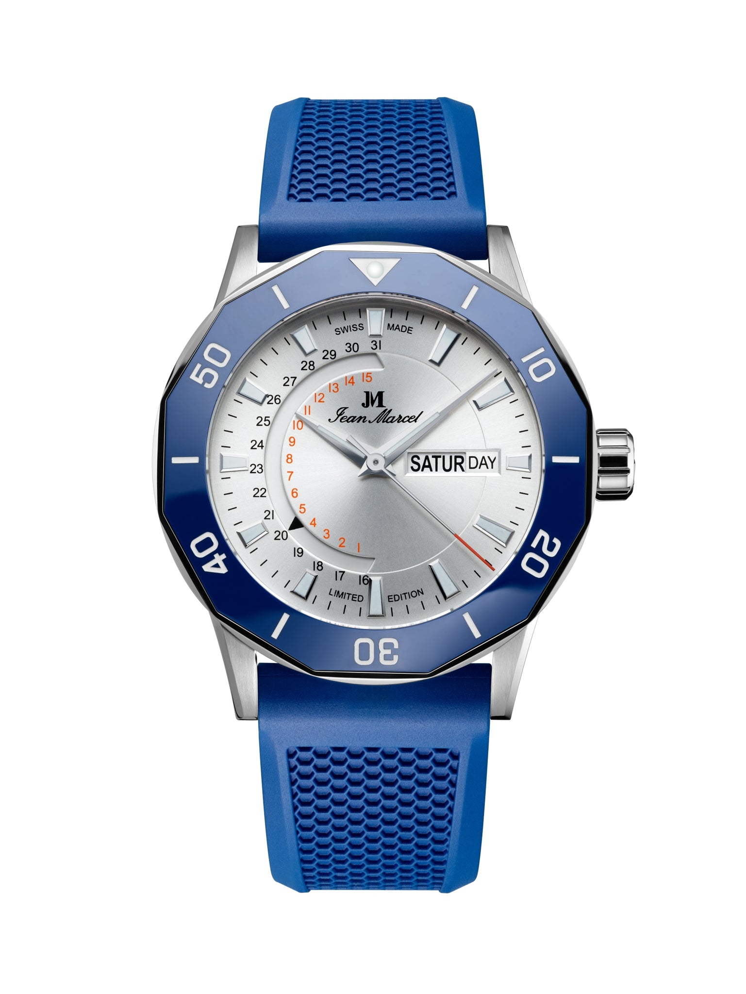 JEAN MARCEL watches stand out from uninspired off-the-shelf products. Patents for exceptionally positioned date and day apertures, telemetry indicators on the opposite side of the central stop-second hand, and the secret signature on the anti-reflective coating, which becomes visible through gentle breathing on the sapphire crystal, make Jean Marcel watches so special.