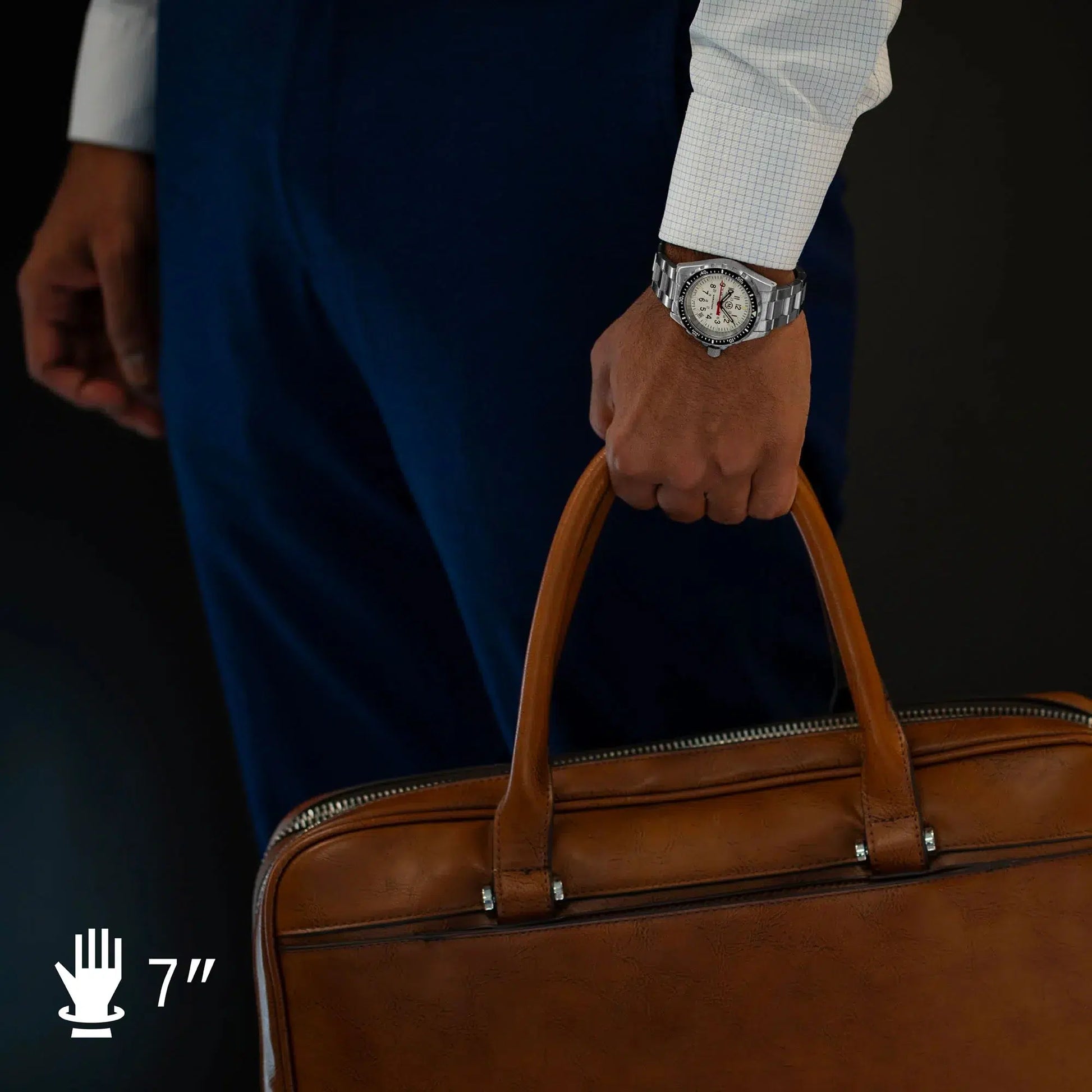 - Stunden-, Minuten- und Sekundenzeiger mit selbstleuchtenden Tritiumröhren