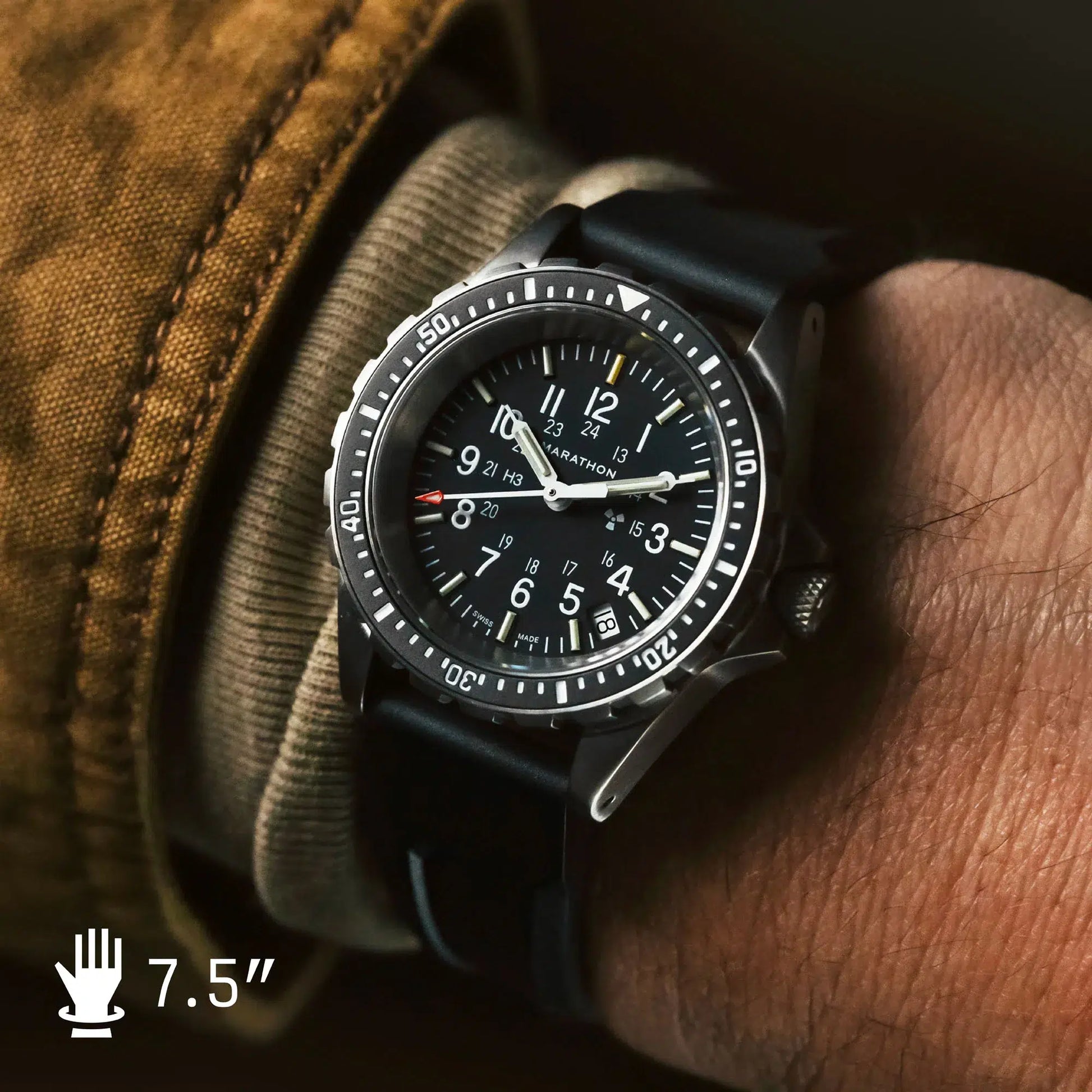 - Schwarzes Marathon Kautschukarmband inkl. Dornschließe aus 316L-Edelstahl