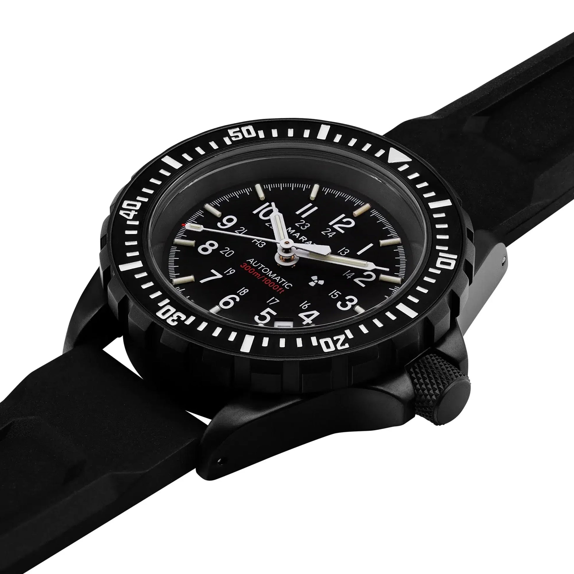 - Schwarzes Marathon Kautschukarmband inkl. Dornschließe aus 316L-Edelstahl