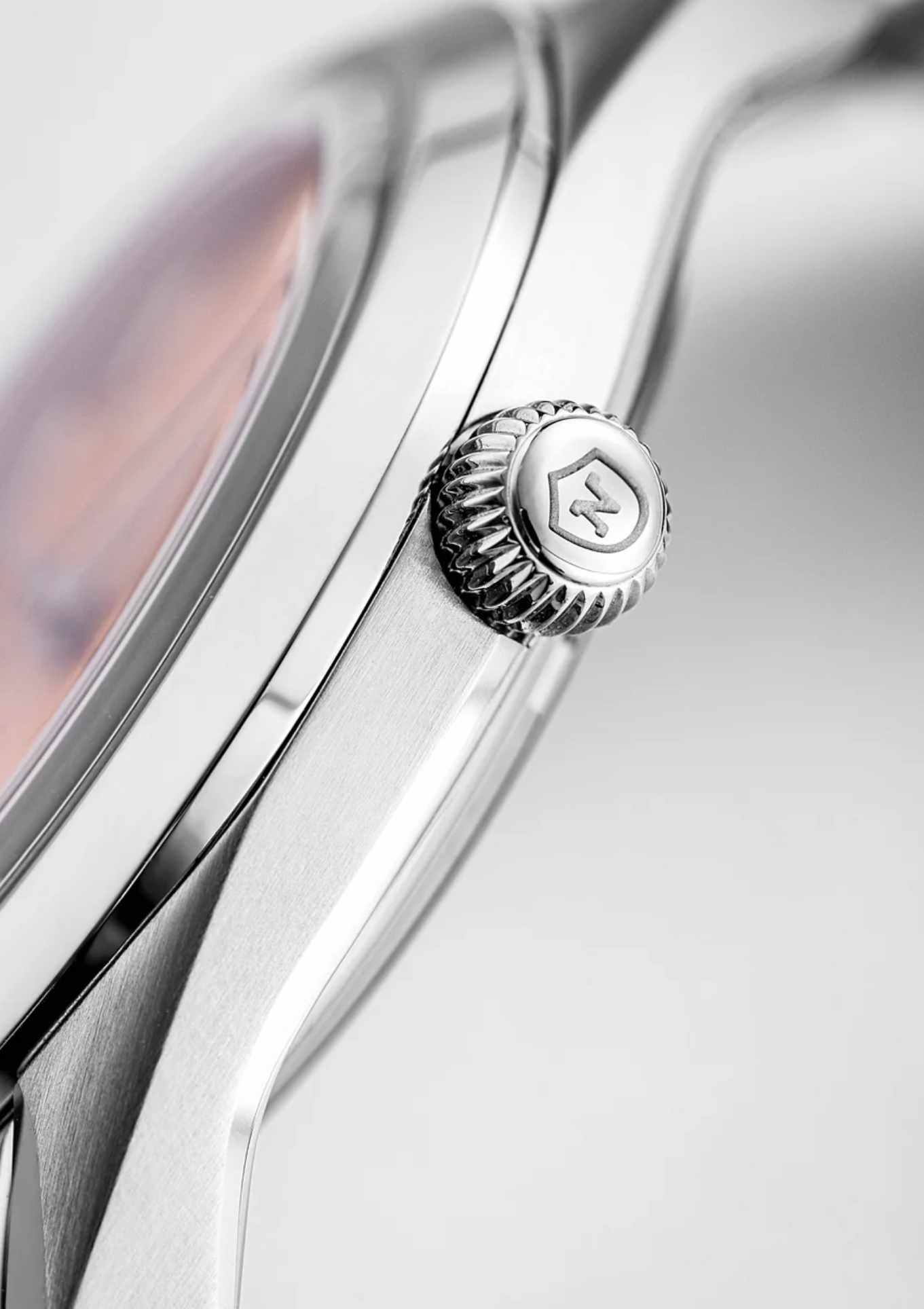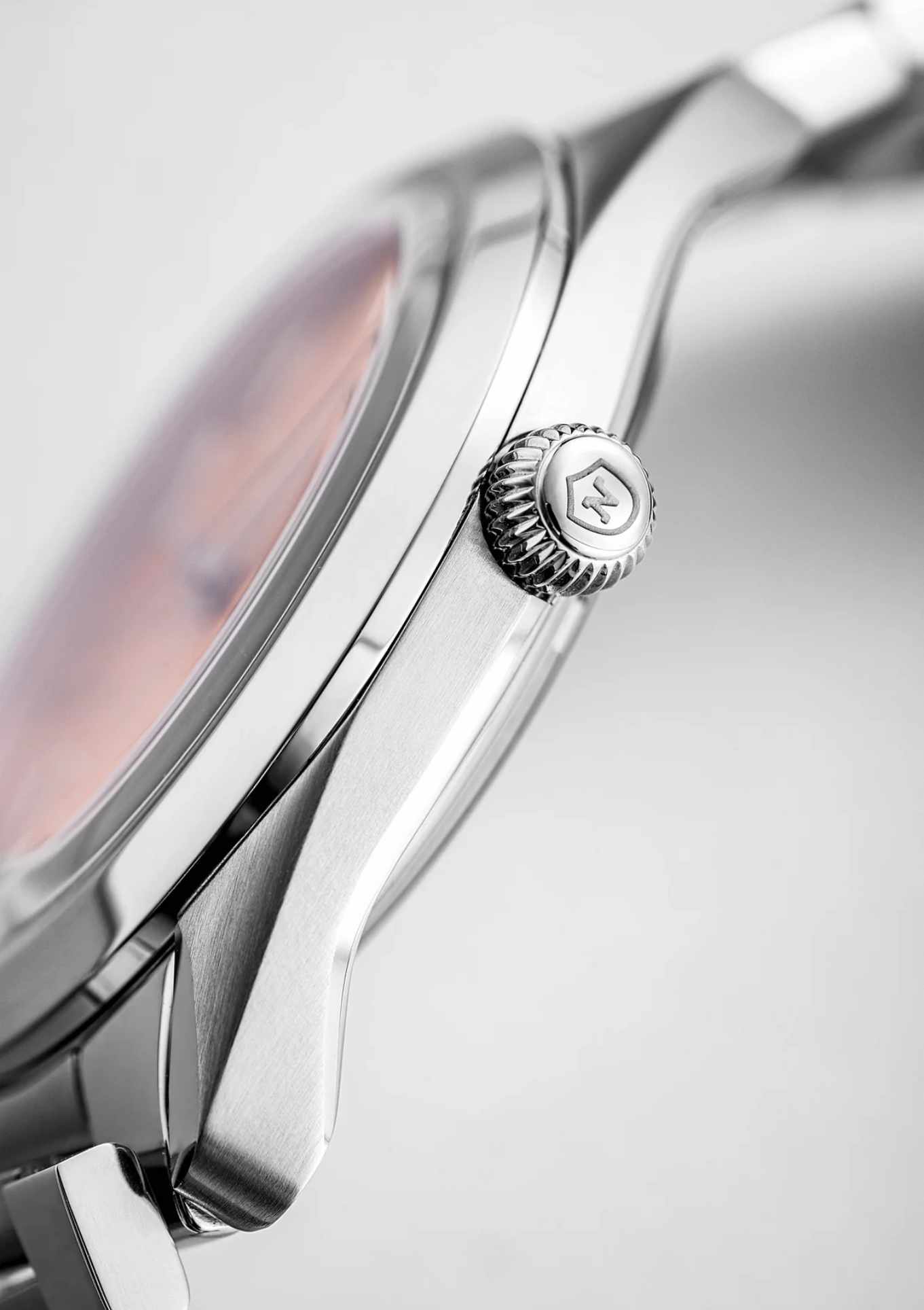 • Lachsfarbenes Zifferblatt mit Sonnenschliff