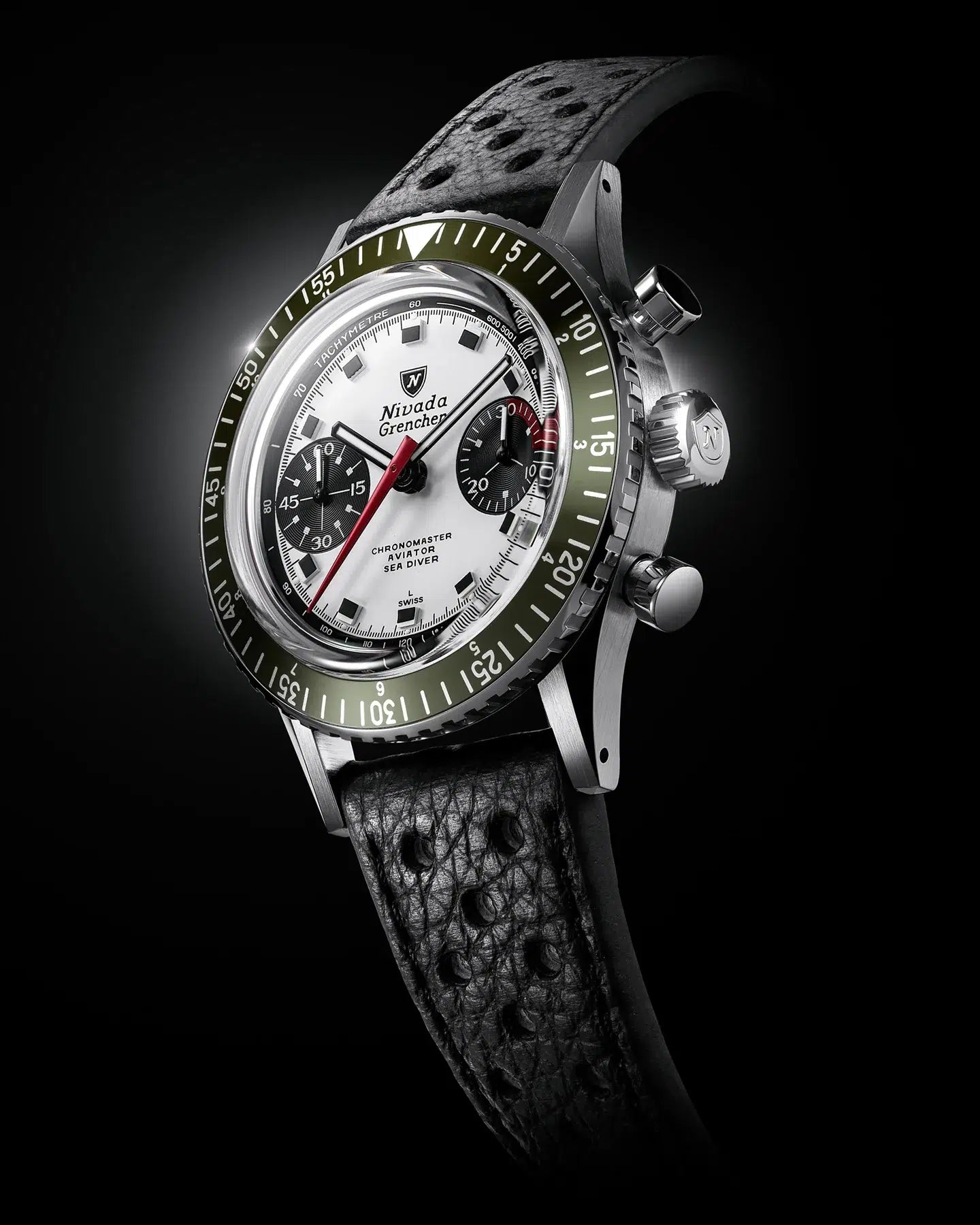 In 2018, the Nivada Grenchen brand was revived with its two iconic models – the Chronomaster Aviator Sea Diver and the Antarctic.