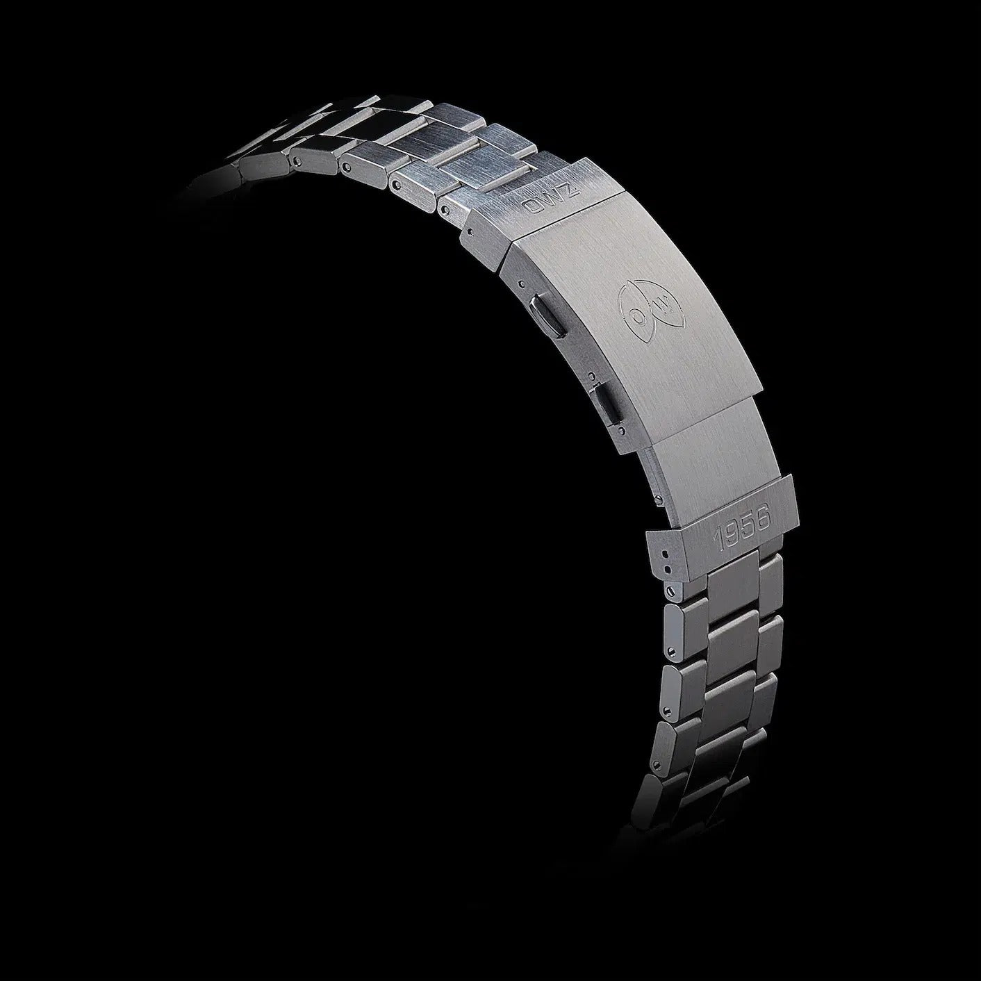 Handgefertigtes italienisches Lederband mit Dornschließe aus gebürstetem Edelstahl und ‚OWZ 1956‘ Gravur - Stahlband