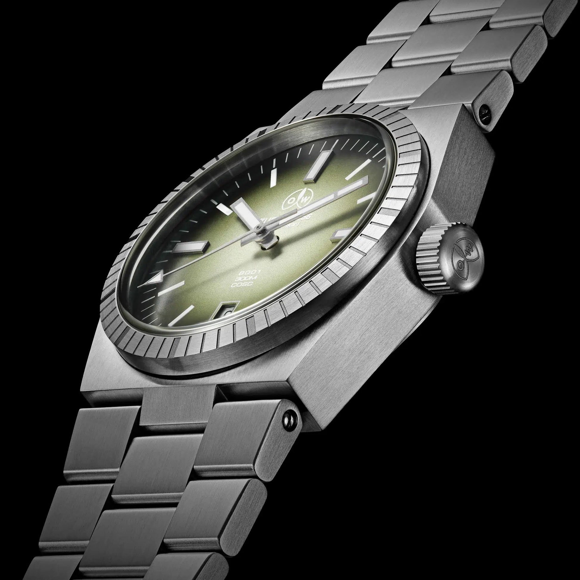- Doppelt lackiertes Zifferblatt in Tundra Green-Fumé mit radialem Verlaufseffekt