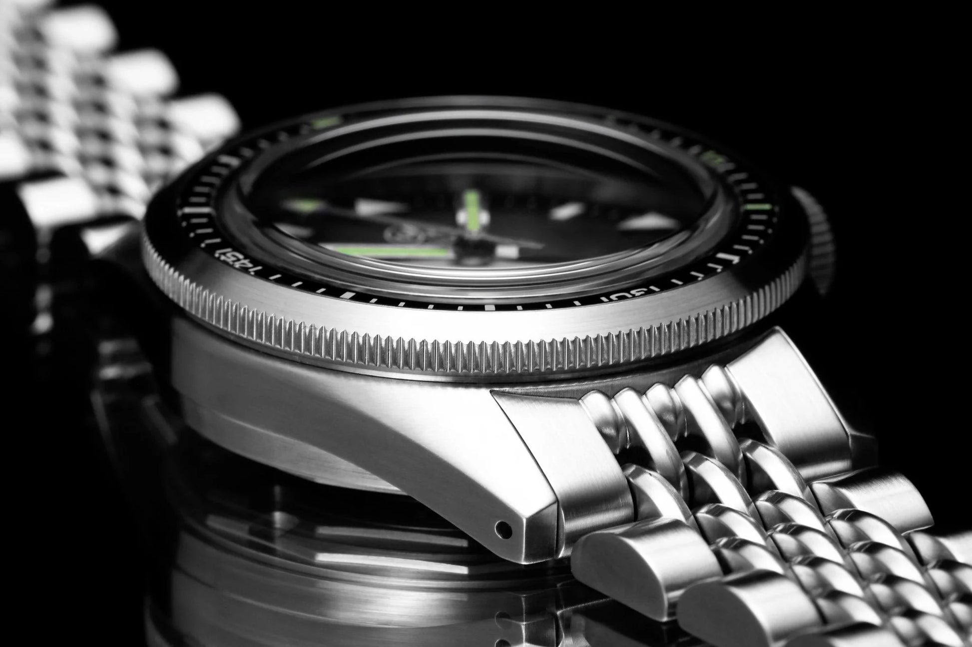 - Teilbereiche der Lünette, Stunden-, Minuten- und Sekundenzeiger sowie Indizes mit Super-LumiNova® belegt