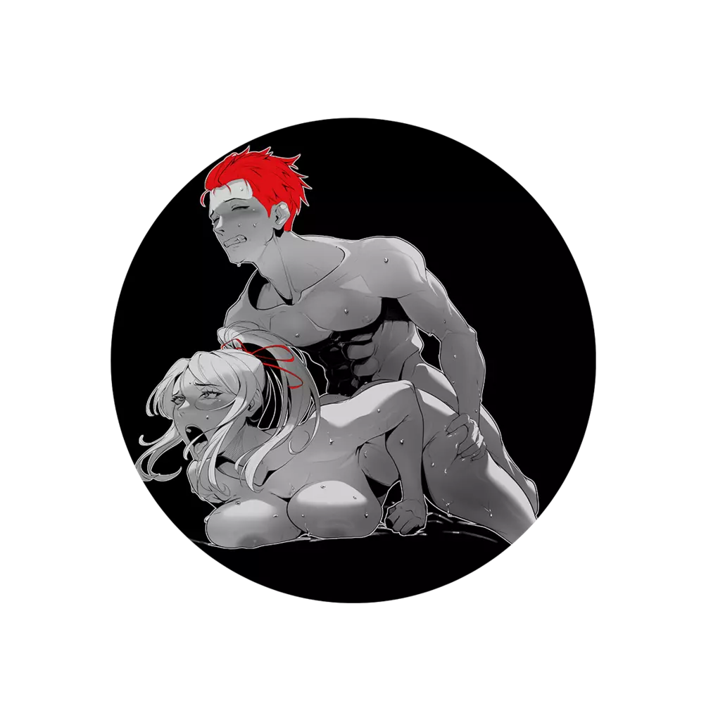 - Schwarz-grau-rotes Zifferblatt mit Manga-Hentai-Figuren, erotische Szene wird sichtbar durch die Turbine durch Handgelenksbewegung