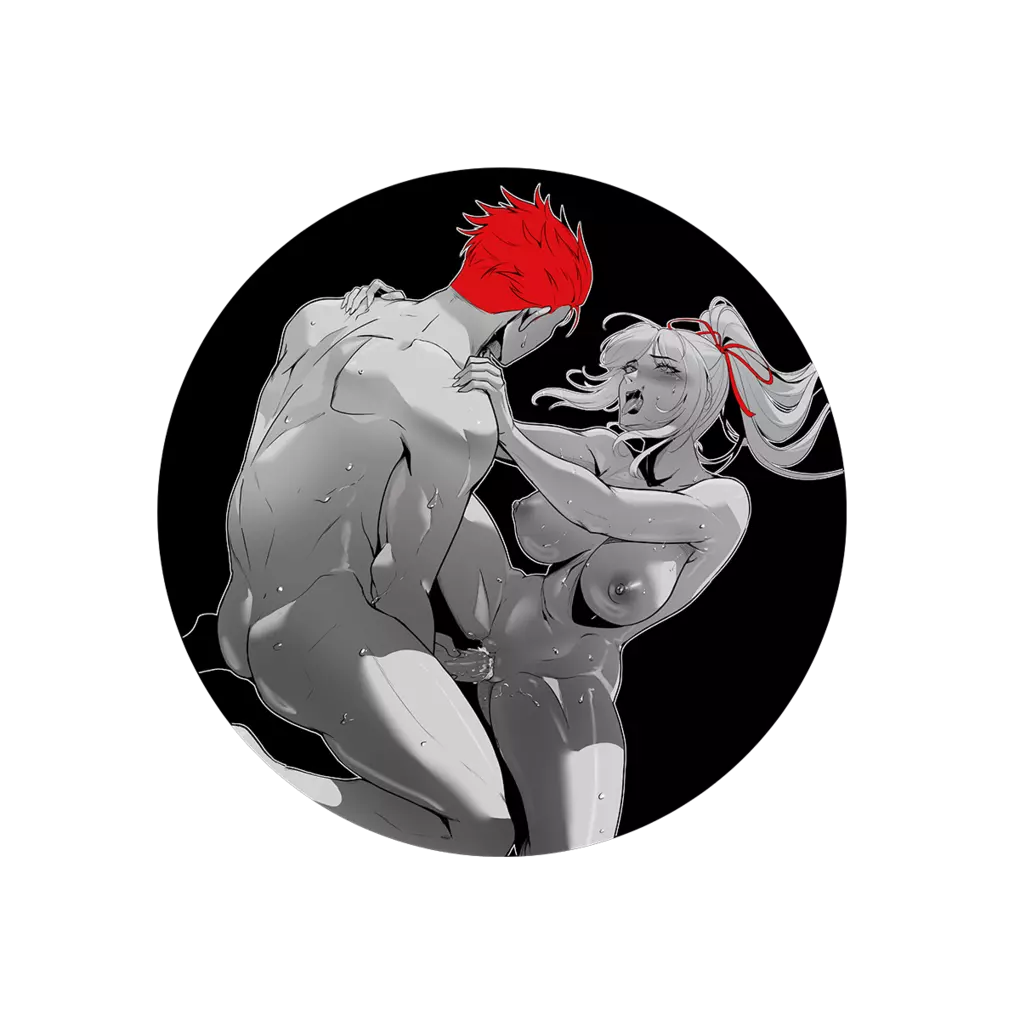 - Schwarz-grau-rotes Zifferblatt mit Manga-Hentai-Figuren, erotische Szene wird sichtbar durch die Turbine durch Handgelenksbewegung