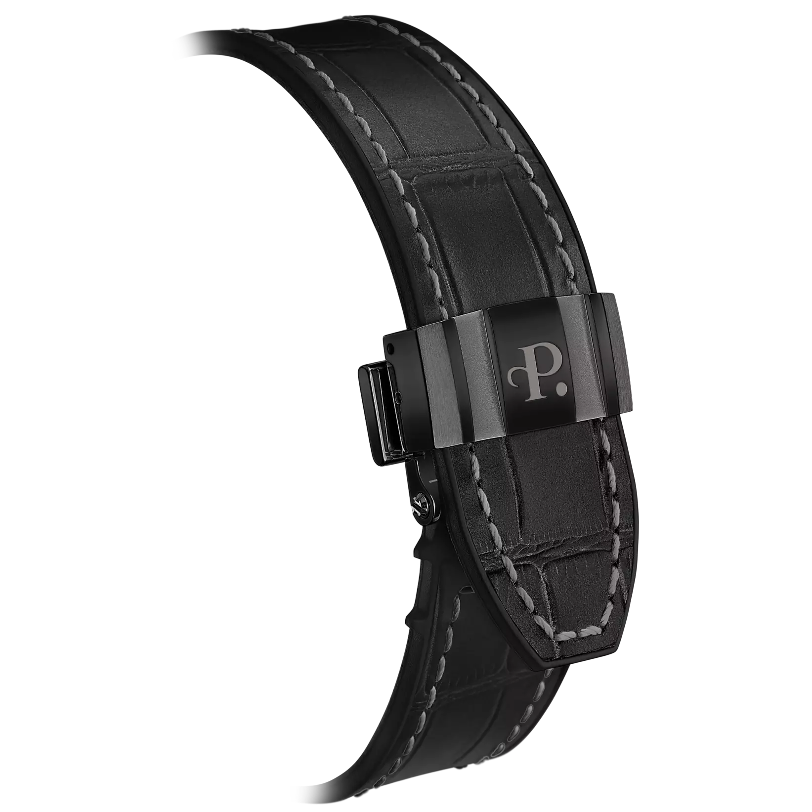 - Schwarzes Lederband mit Kroko-Prägung und Faltschließe
