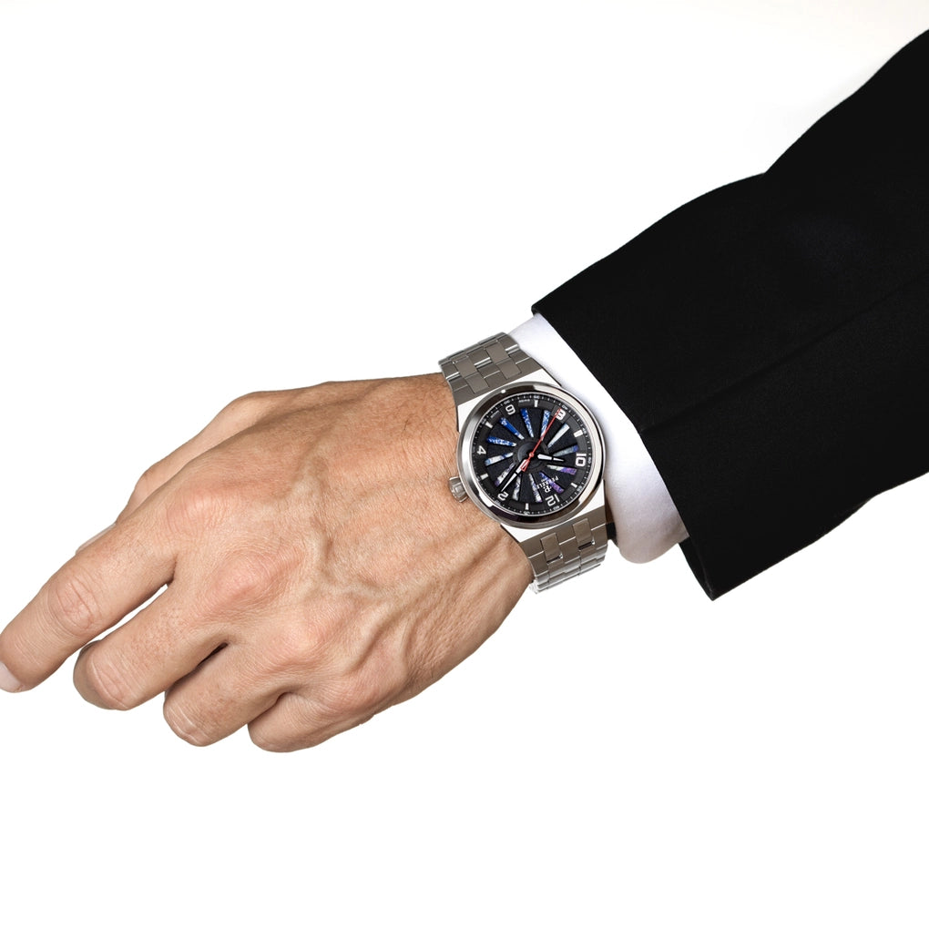 Das 41 mm große Titan-Gehäuse sorgt für ein besonders geringes Gewicht und hohen Tragekomfort. Im Inneren arbeitet das zuverlässige, COSC-zertifizierte Automatikwerk Kaliber P-331-MH mit rund 42 Stunden Gangreserve. Zusammen mit dem robusten Silikonarmband entsteht eine sportlich-technische Uhr, die Schweizer Präzision mit hohem Wiedererkennungswert verbindet.