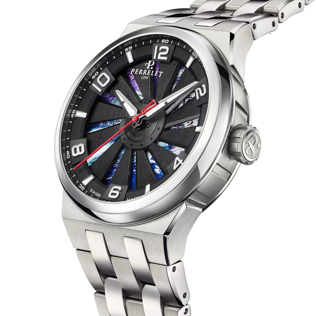 Die Turbine-Kollektion feiert 2019 ihr 10-jähriges Jubiläum. Um diesem bedeutenden Meilenstein zu gedenken, bringt Perrelet die TURBINE EVO mit vollständig überholtem Design und neuem In-House-Uhrwerk mit Kaliber P-331-MH auf den Markt. Die Turbine EVO ist in einem neuen sportlich schicken Gehäuse untergebracht, das jetzt ein Edelstahl-Armband umfasst. Zum ersten Mal in seiner zehnjährigen Geschichte sind alle Uhrwerke dieser Kollektion COSC-zertifiziert und beweisen damit, nach einer ganzen Reihe von Tests, die hohe Präzision bei der Zeitnahme.
