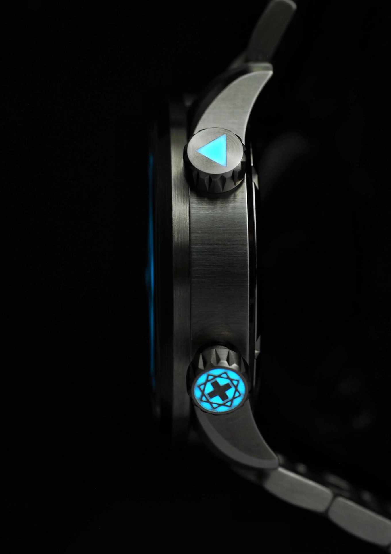 - Zwei verschraubte Kronen, gefüllt mit Superluminova (BGW9)