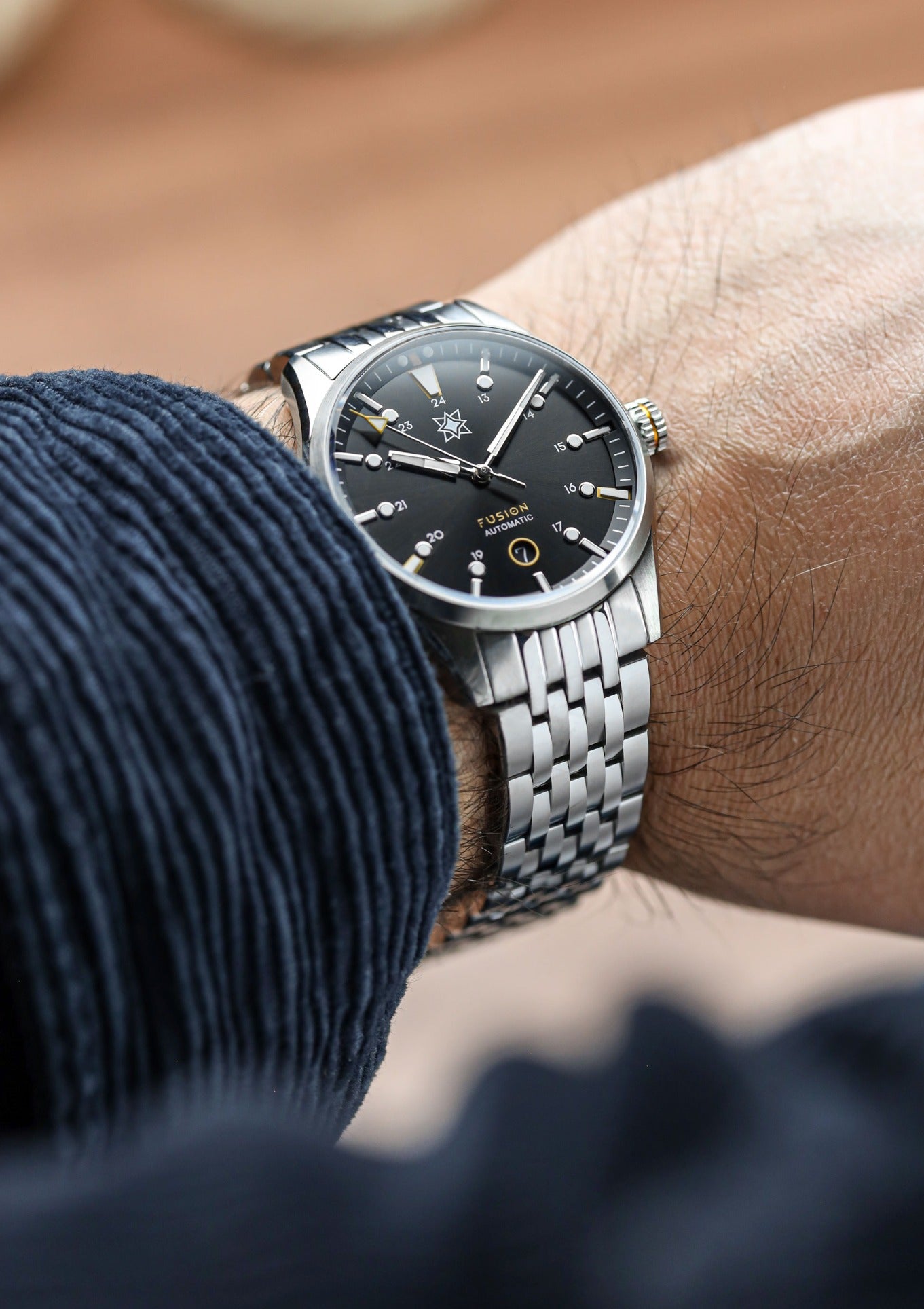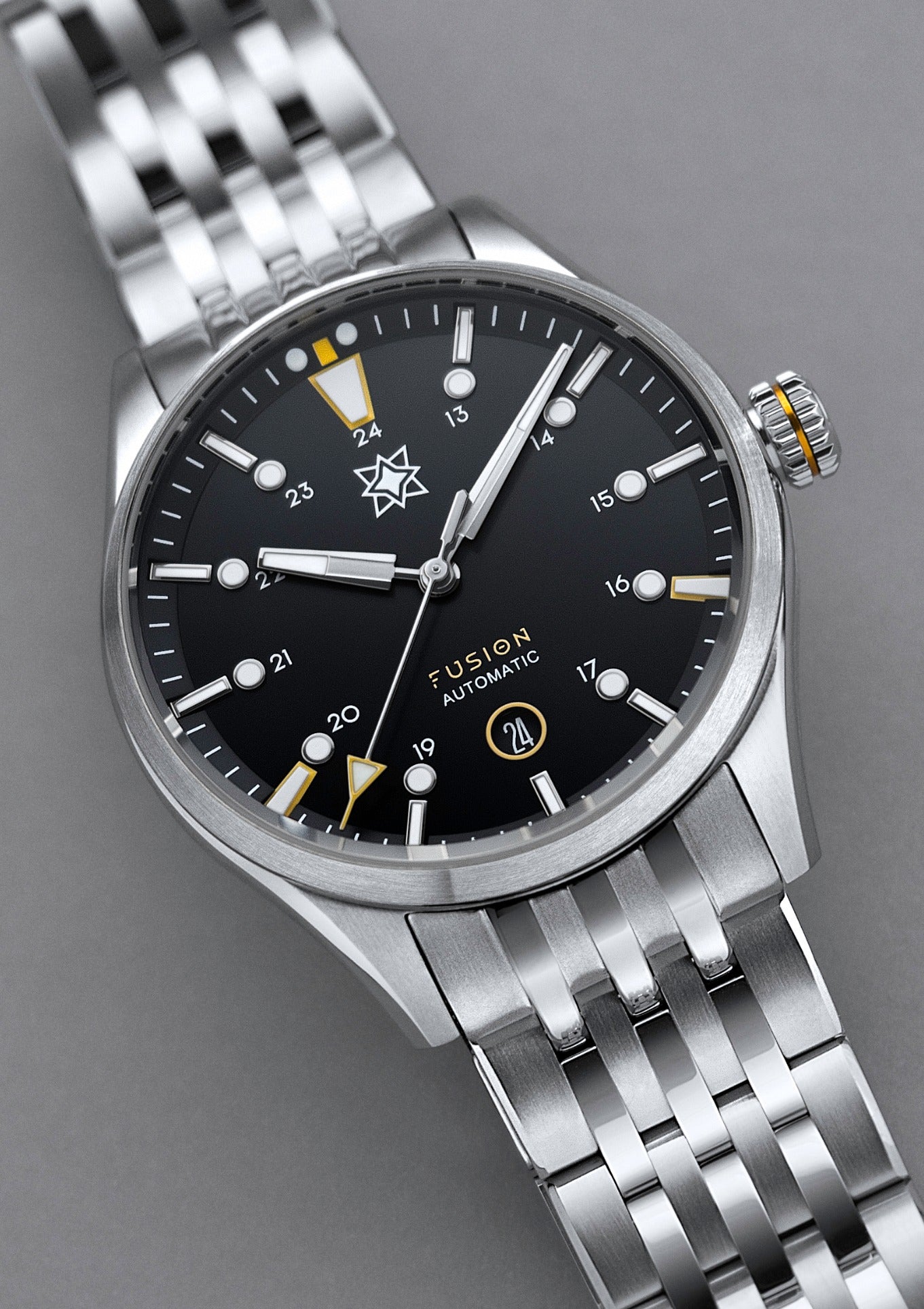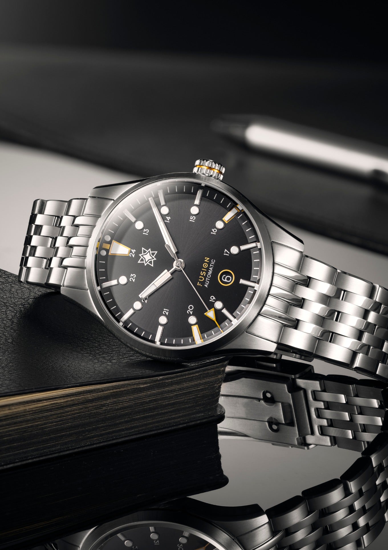 Die Fusion richtet sich sowohl an Liebhaber von Freizeit- als auch von Sportuhren und kombiniert robuste Verarbeitungsqualität und Langlebigkeit mit einem spannenden Gehäuseprofil und wunderschönen Zifferblättern. Jede Komponente wurde für eine hohe Anziehungskraft, perfekte Tragbarkeit und optimale Alltagstauglichkeit entworfen: Ein schlankes Profil, geschwungene Bandanstöße, Schnellwechselsysteme für einen einfachen Bandwechsel und die besonders flache Faltschließe mit werkzeugloser Feinverstellung.