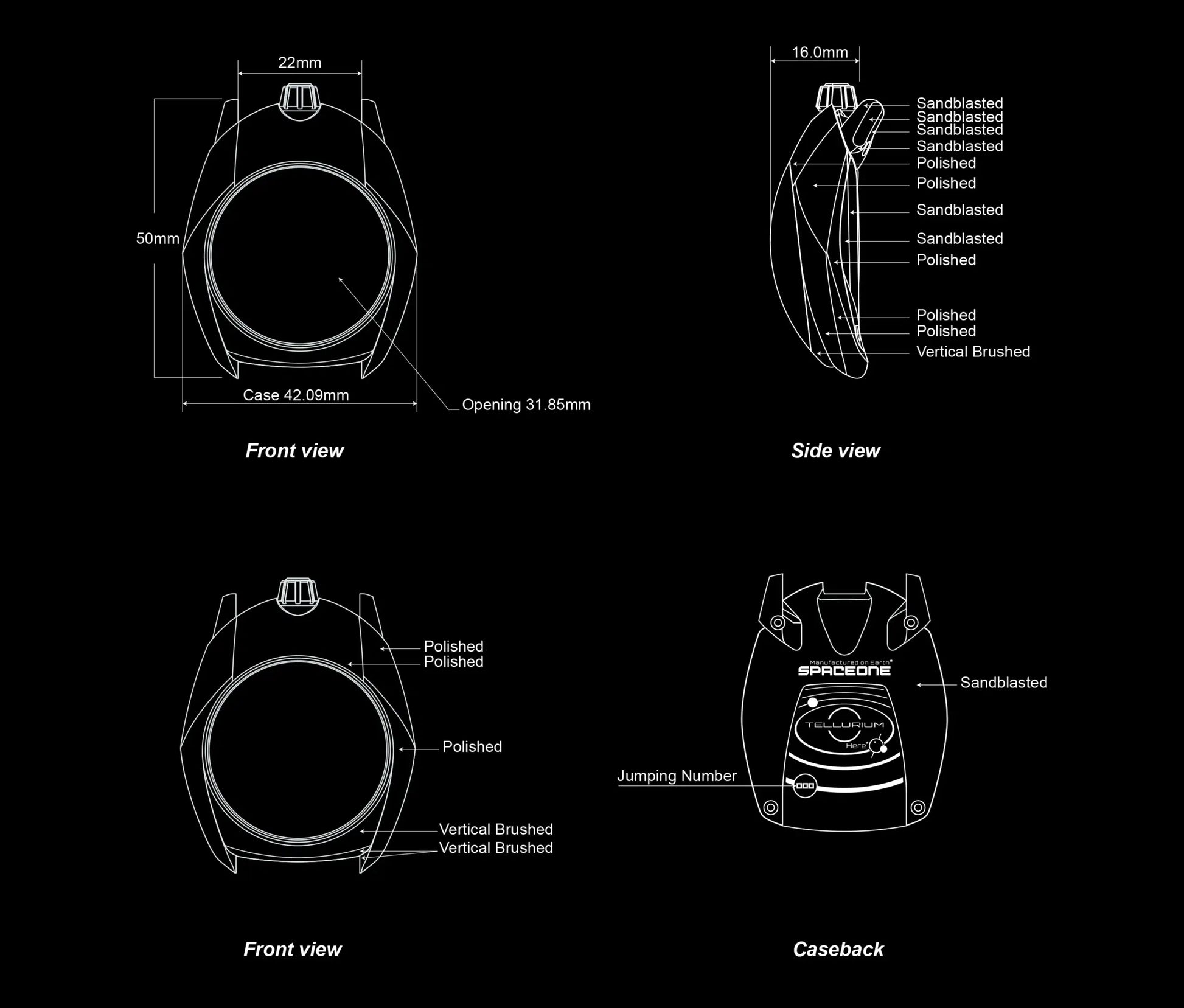 - Grade-5 Titan, poliert mit gebürsteten und sandgestrahlten Elementen