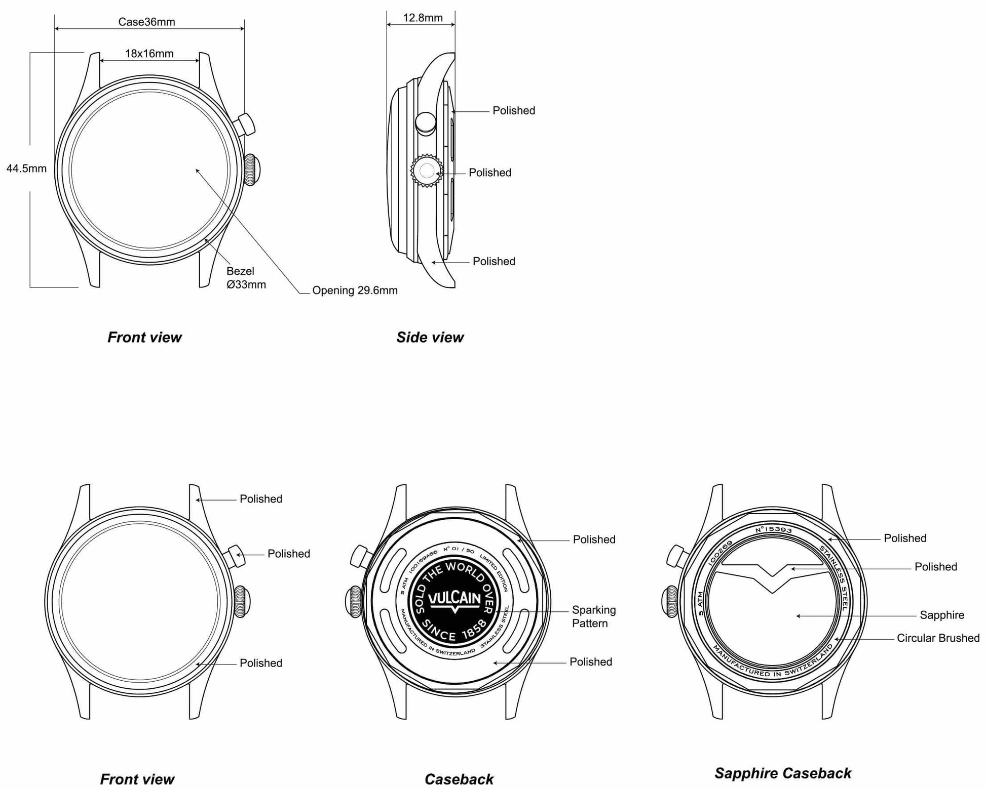 • Mit geschlossenem Gehäuseboden aus Edelstahl oder offenem Gehäuseboden mit Sapphirglas – bitte wählen Sie unten Ihre Version