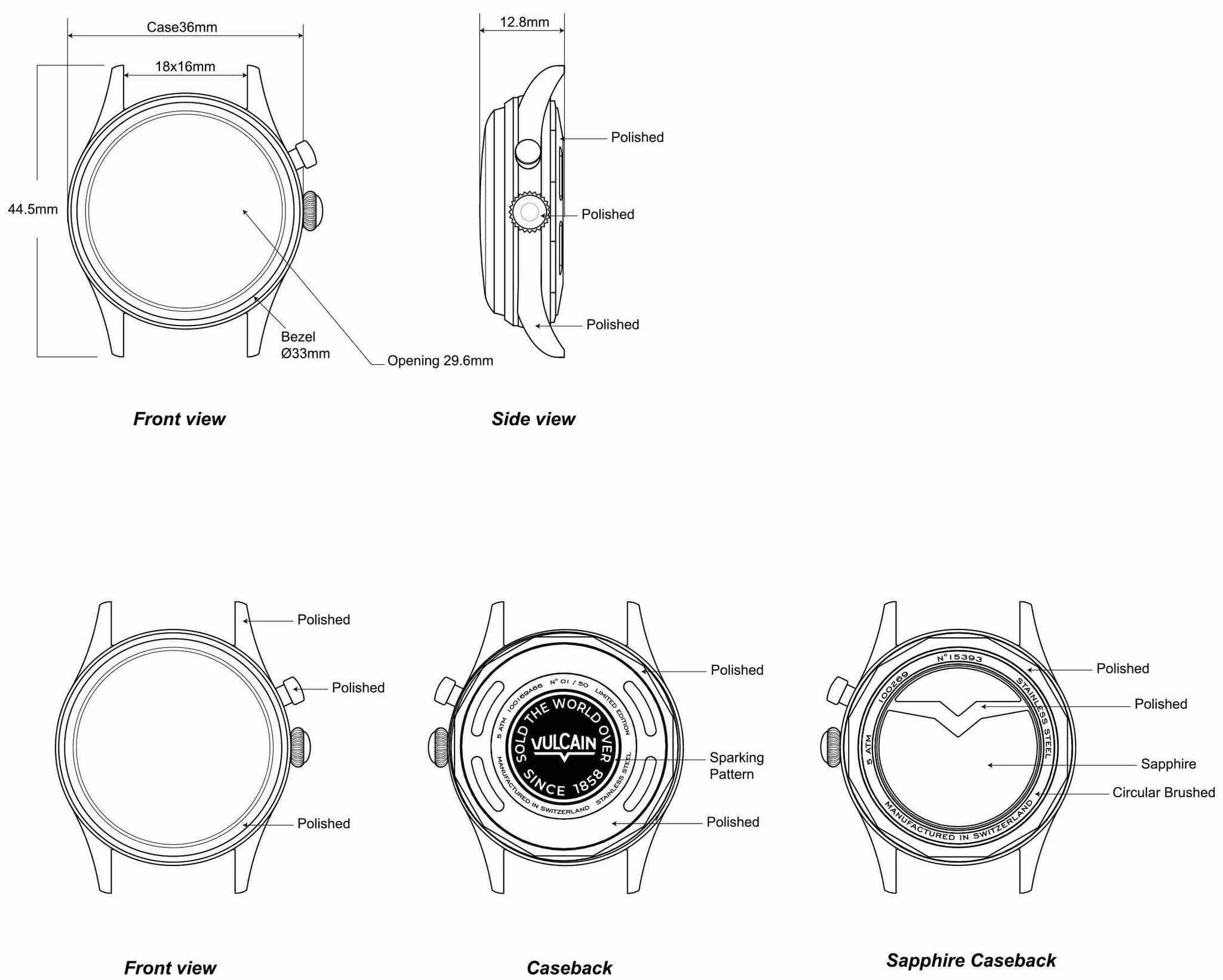 • Werk-Version: Vulcain Cricket Manufactured V-10 (In-House Werk)