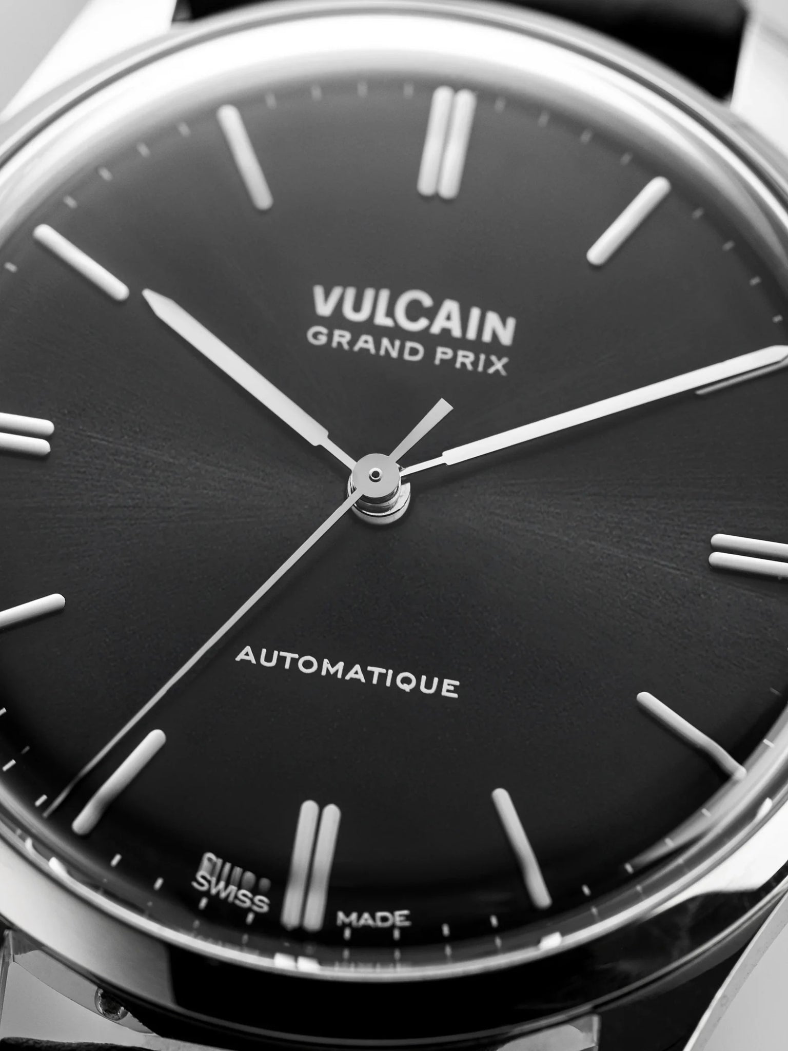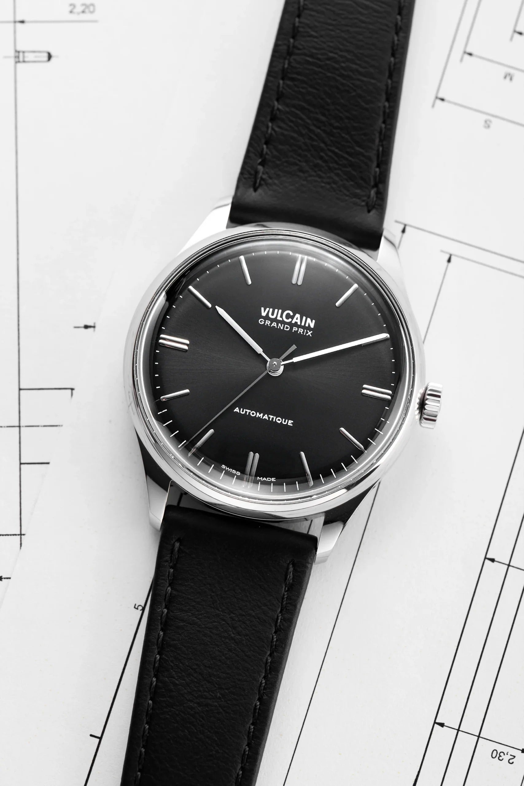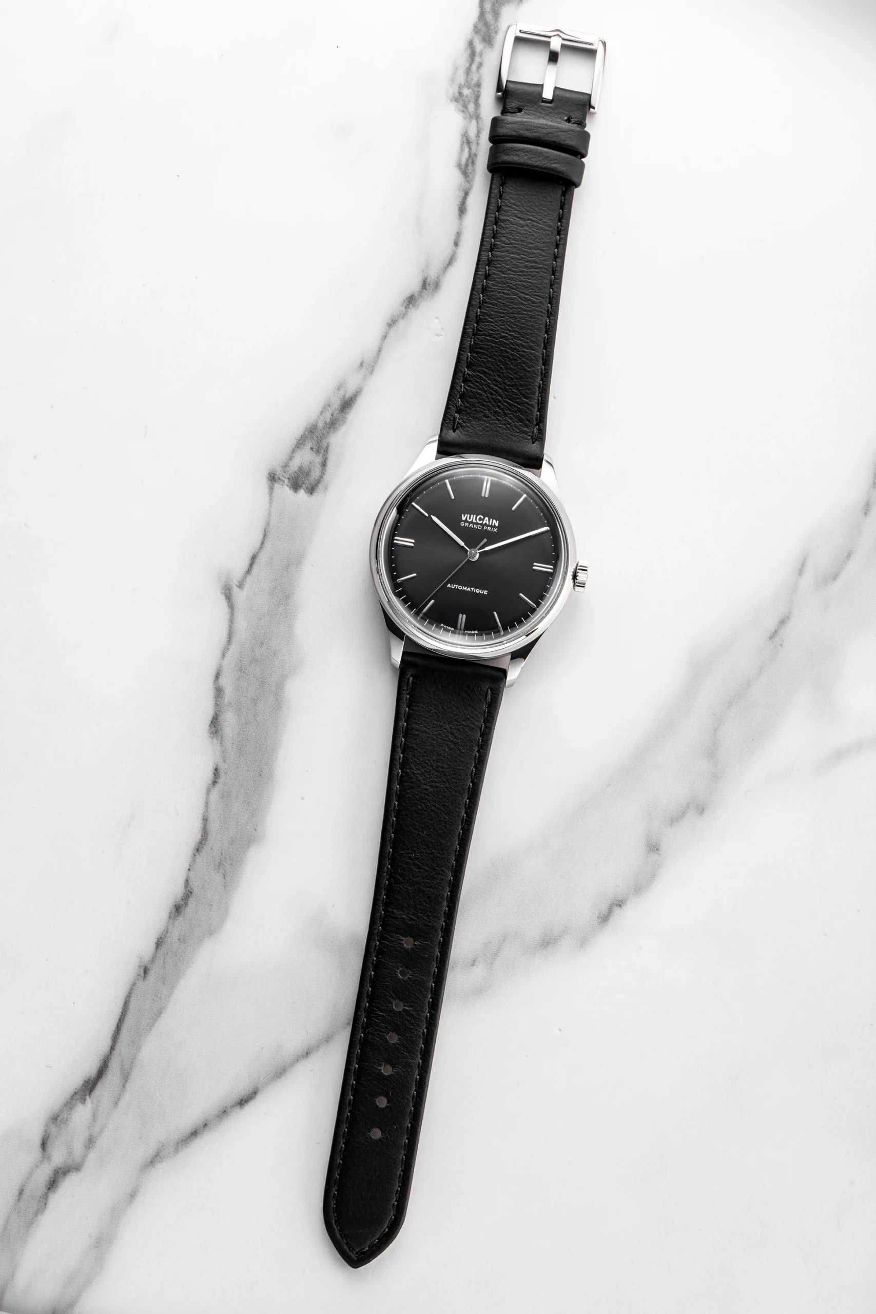 • Schwarzes Vulcain Lederband mit Edelstahl-Dornschließe