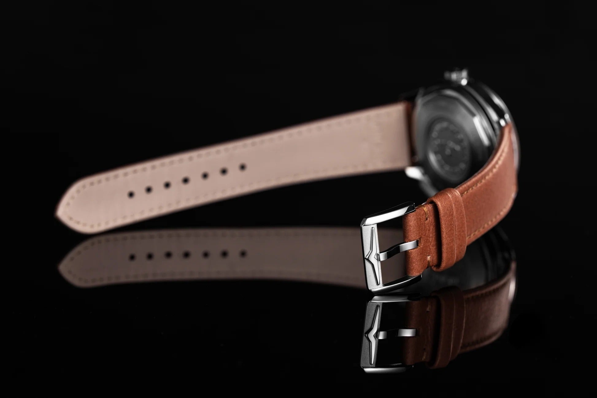 • Schwarzes Vulcain Lederband mit Edelstahl-Dornschließe