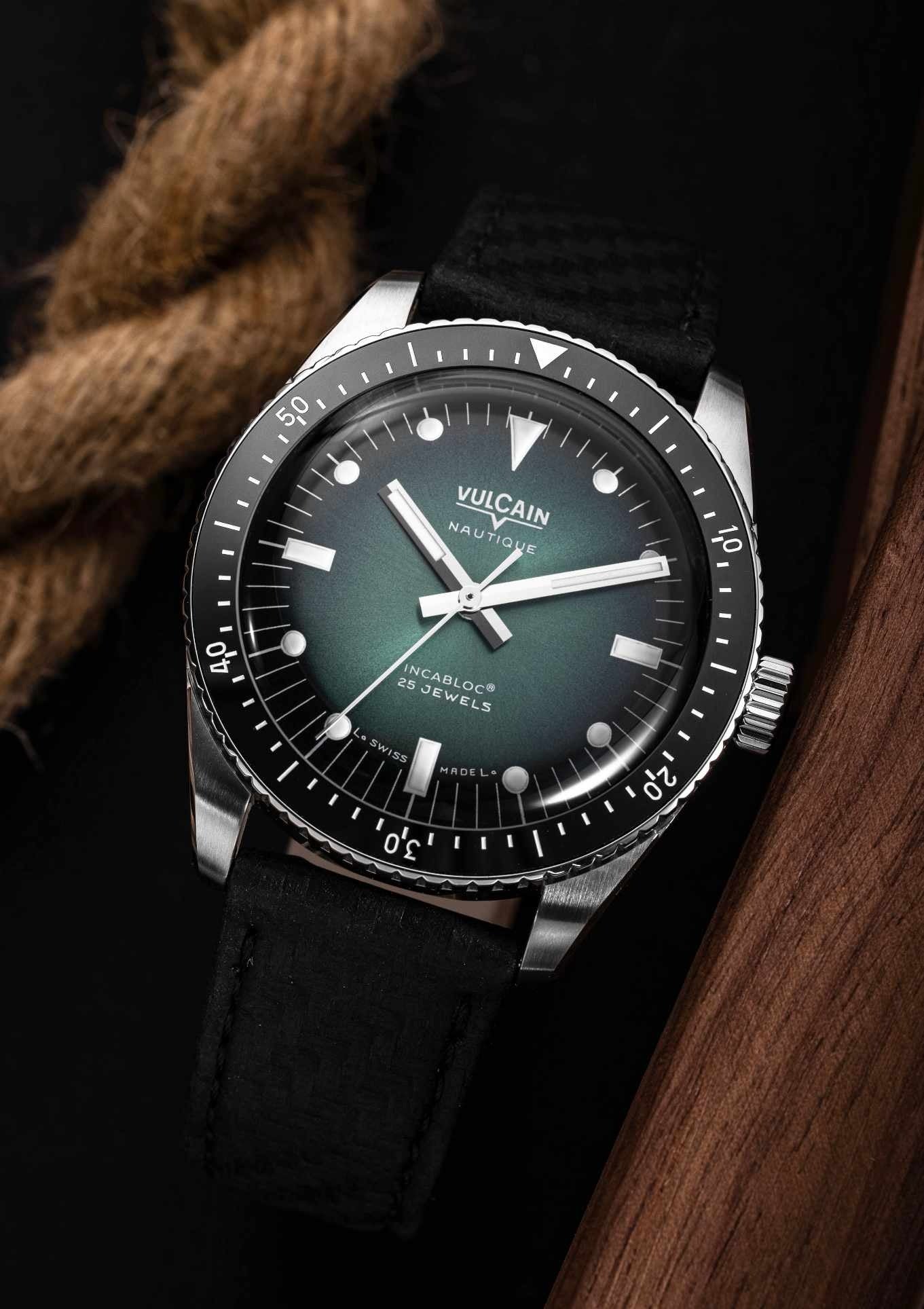 • Vulcain Skindiver Deep Teal Special Limited Edition with deep green sunray dial