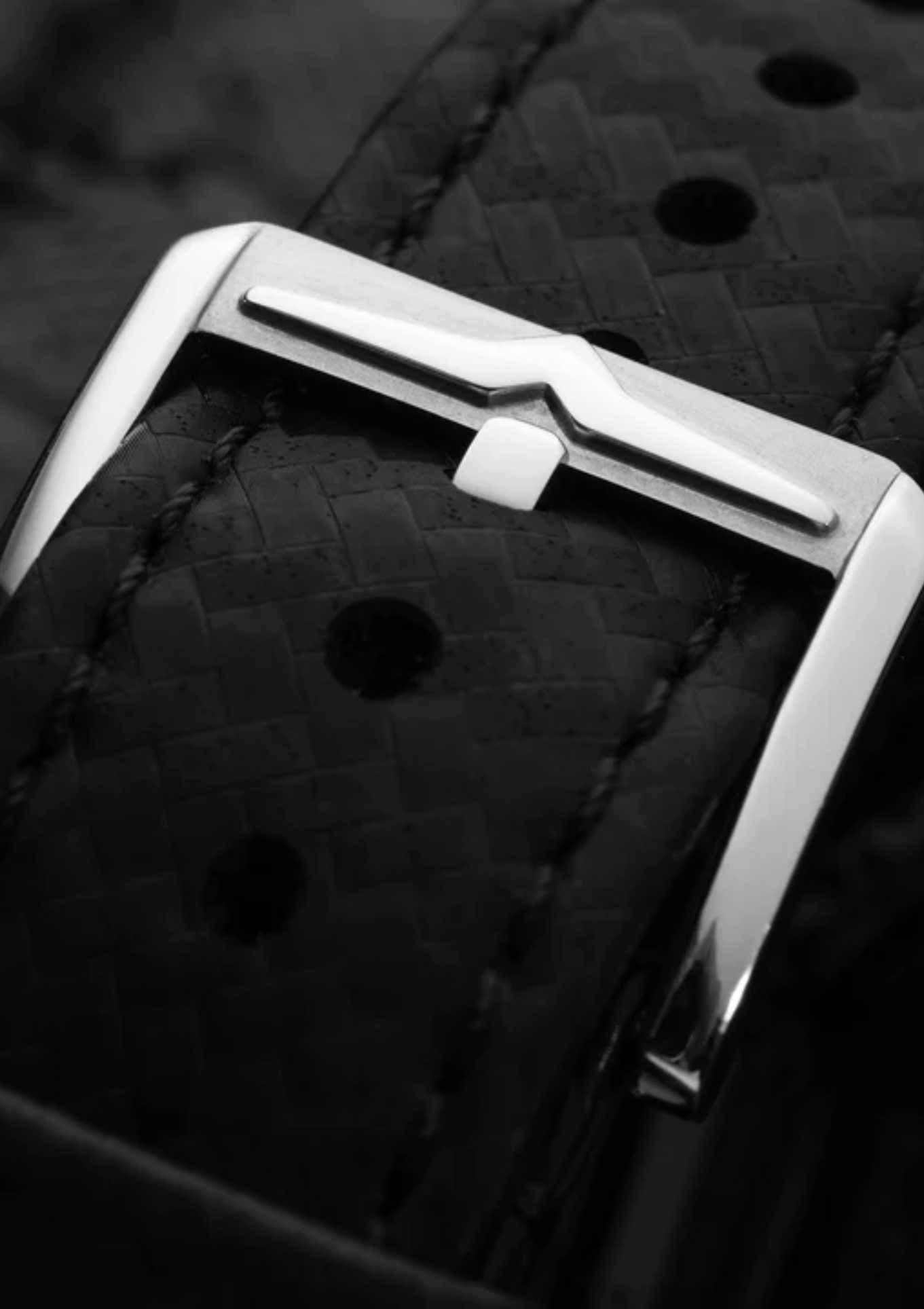 • Schwarzes Lederband in Carbon-Optik