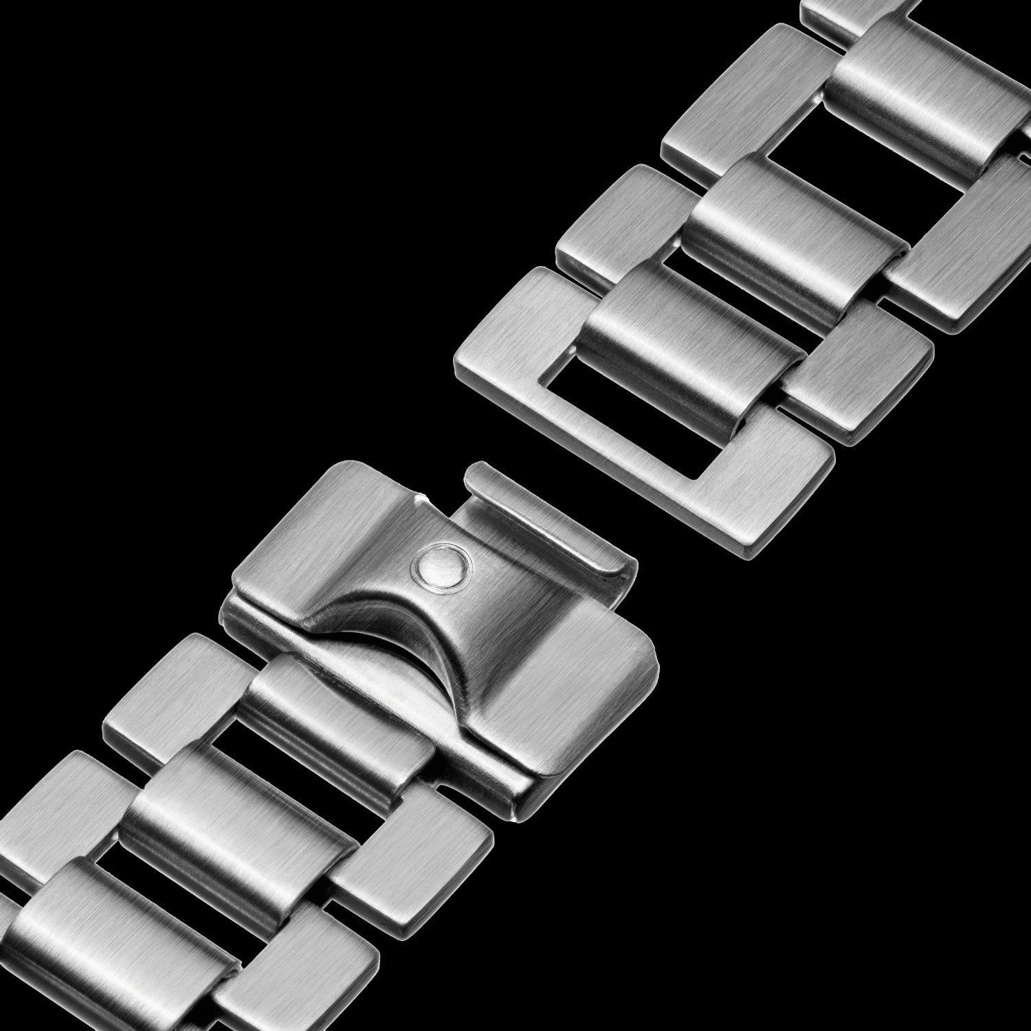 - Edelstahl-Metallband mit erweiterbarem „Diver“-Glied für den Einsatz in der Stadt und beim Tauchen