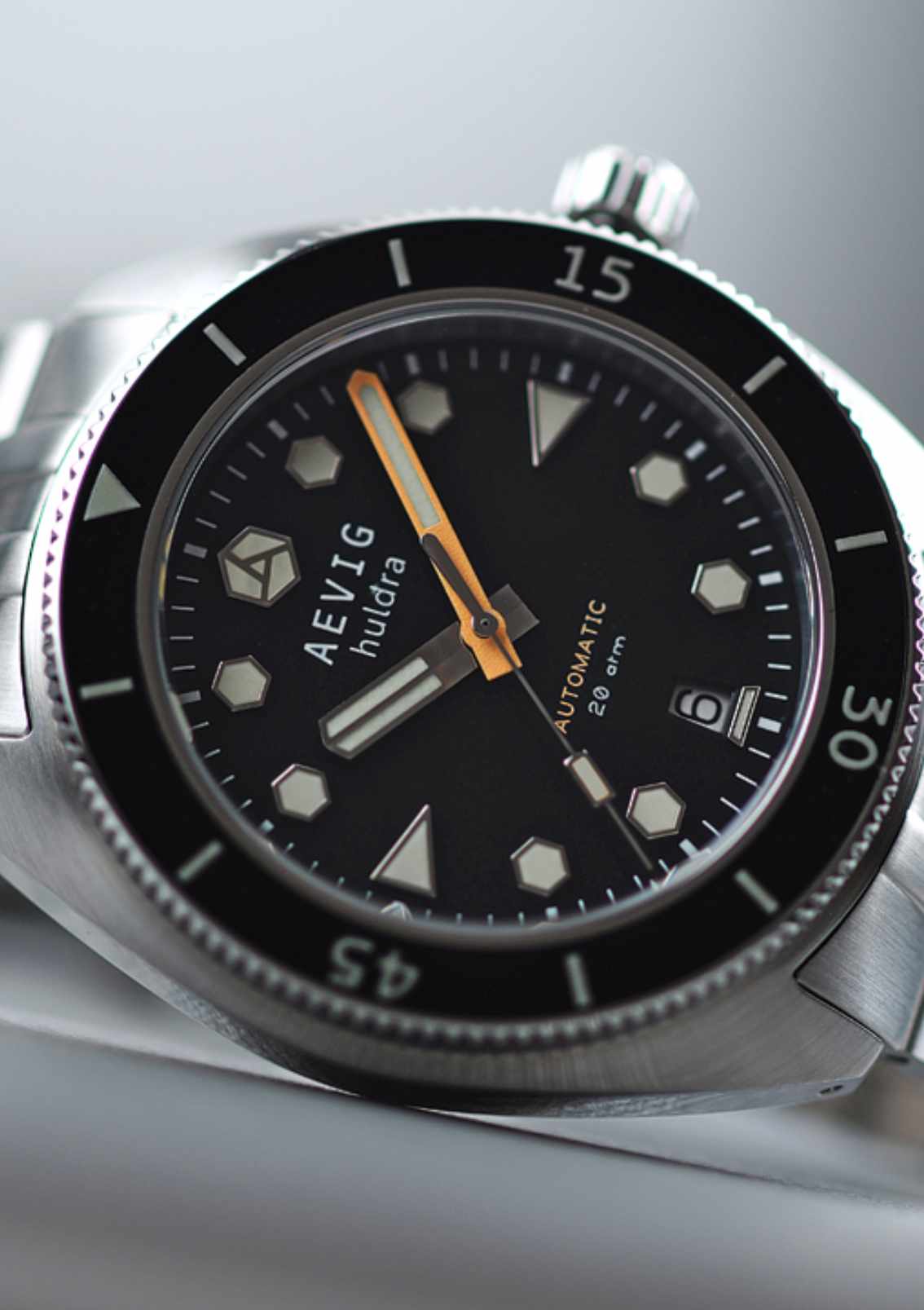 - Einseitig drehbare, einrastende Lünette, 120 Klicks