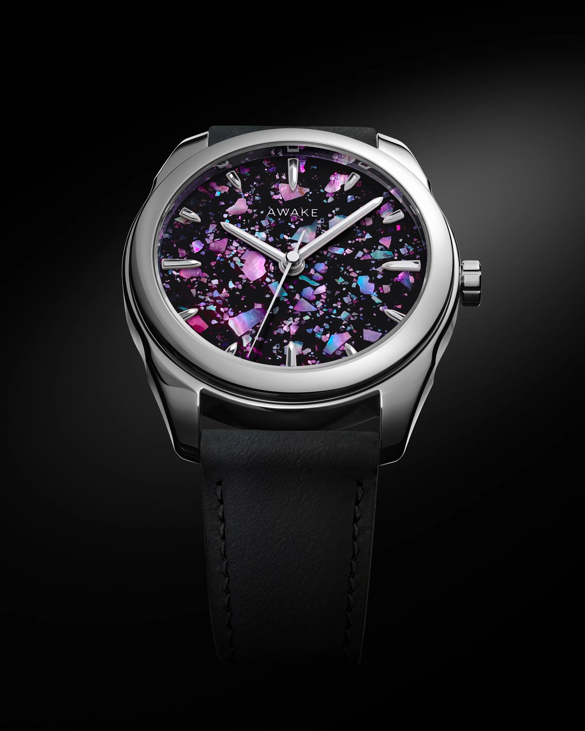 - Awake Son Mai Fragments Pink: Pink-Violett schimmerndes Zifferblatt