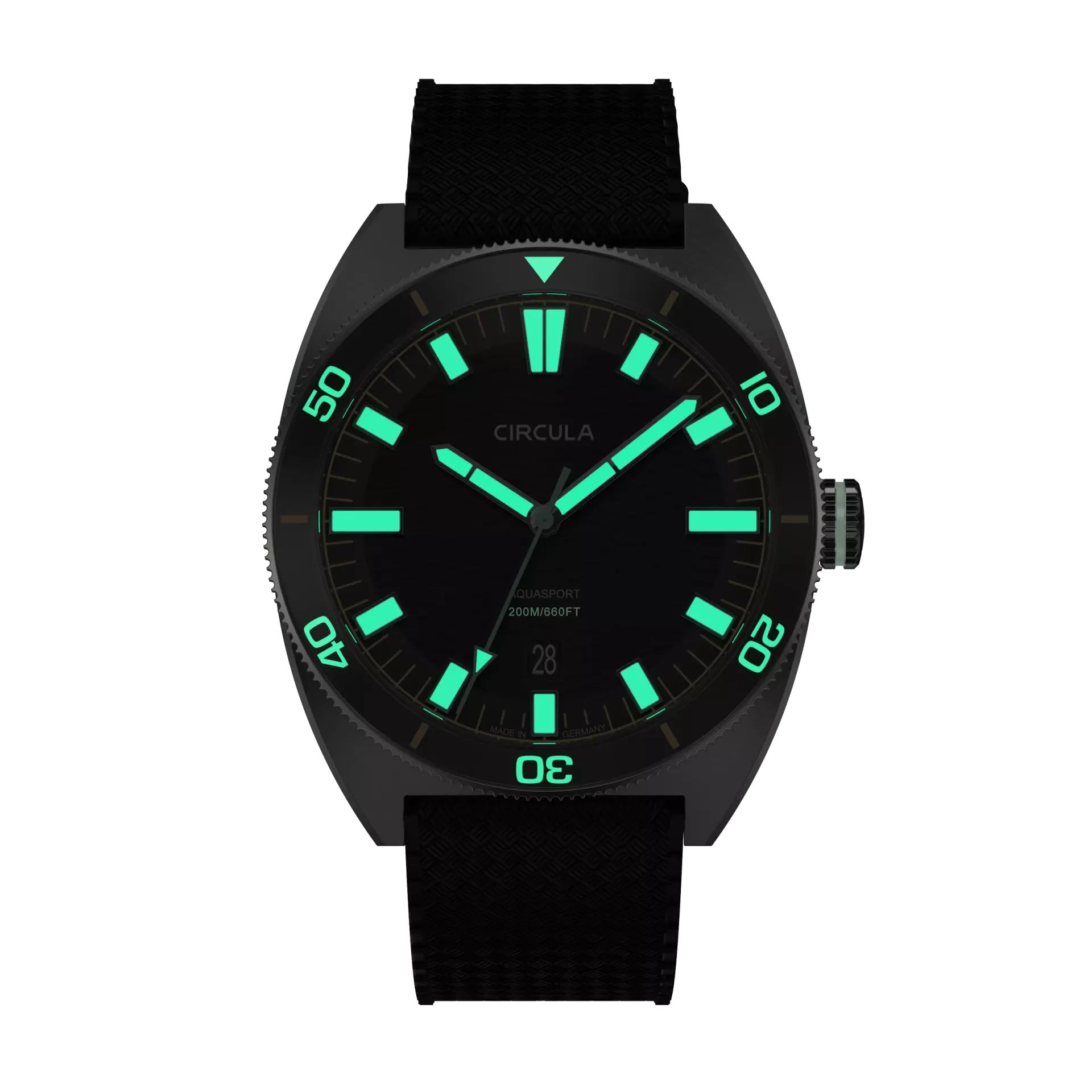 - Gravierte Krone, gefüllt mit Swiss Super-LumiNova BGW9 Leuchtmasse