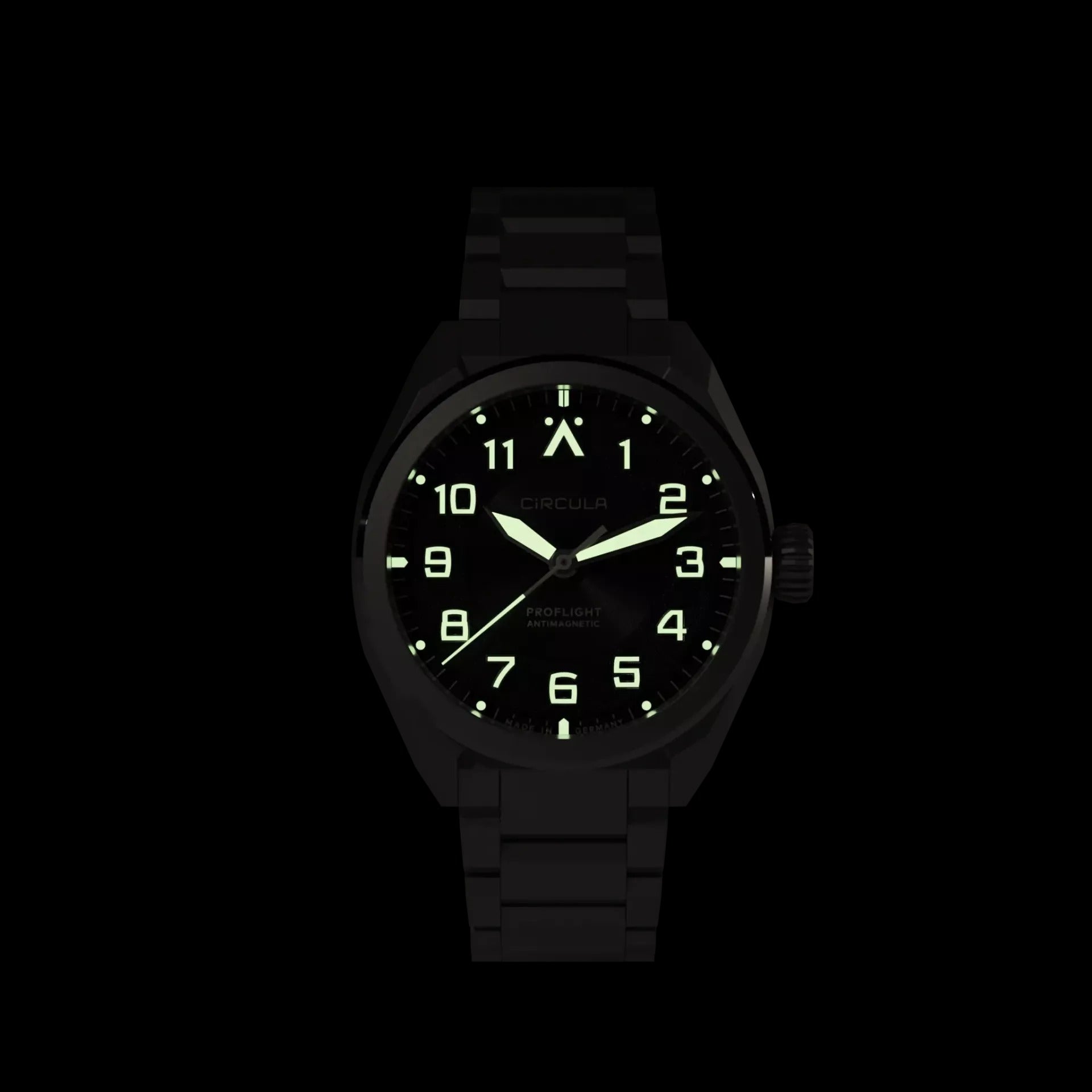 - Zeiger gebürstet, gefüllt mit Swiss Super-LumiNova C3 (grün leuchtend) X1 (höchste Qualität)