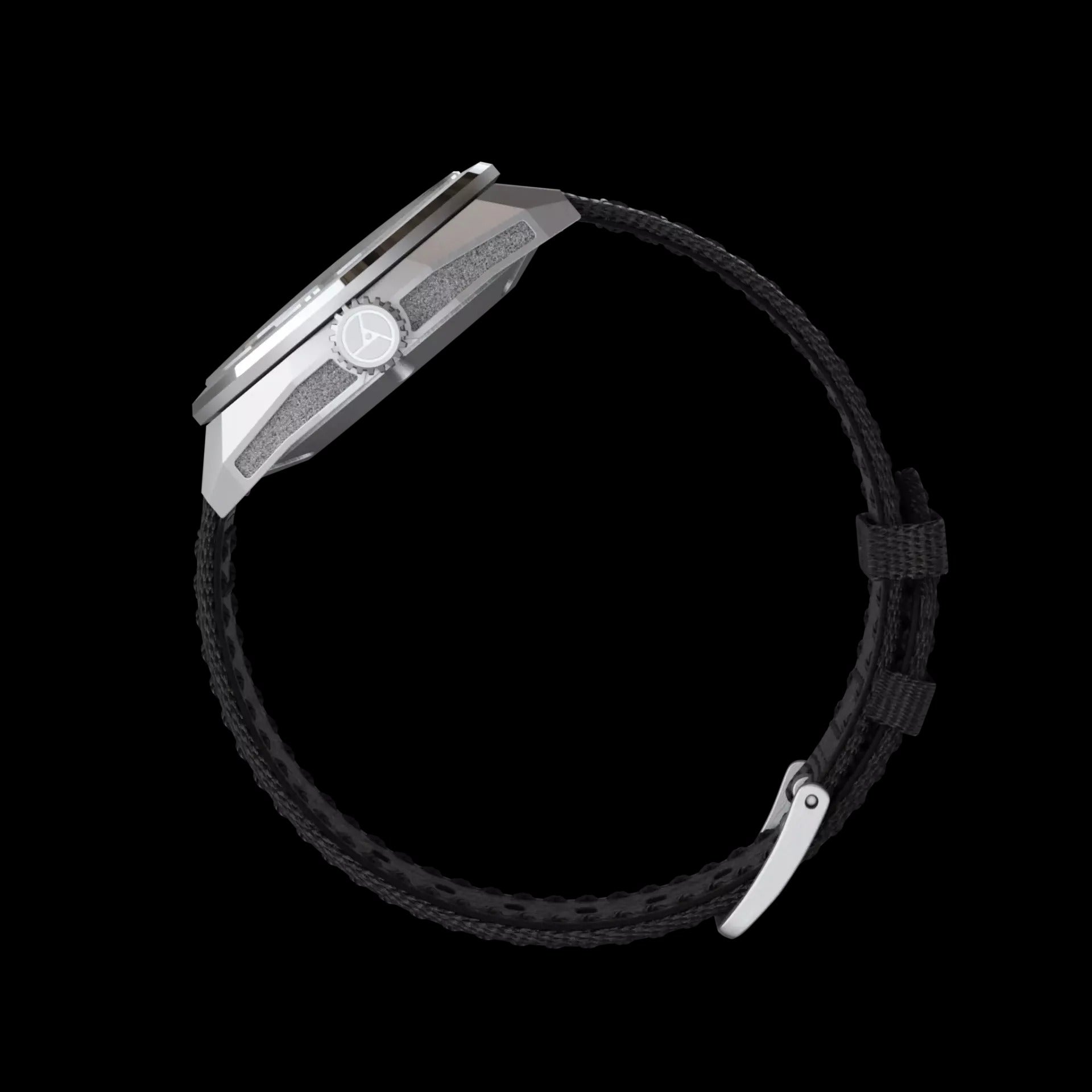 Die klar definierten linearen Flächen fangen das Licht auf unterschiedliche Weise ein und erzeugen beeindruckende visuelle Effekte. Das gesamte Design des Gehäuses verzichtet auf geschwungene Flächen und unterstreicht den strengen Look. Nur der seitliche Blickwinkel zeichnet eine subtile Kurve von einer Bandanlage zur anderen und sorgt für den hohen Tragekomfort der Facet. Die Krone greift auffällig das stilisierte Zahnrad des neuen Markenlogos auf.