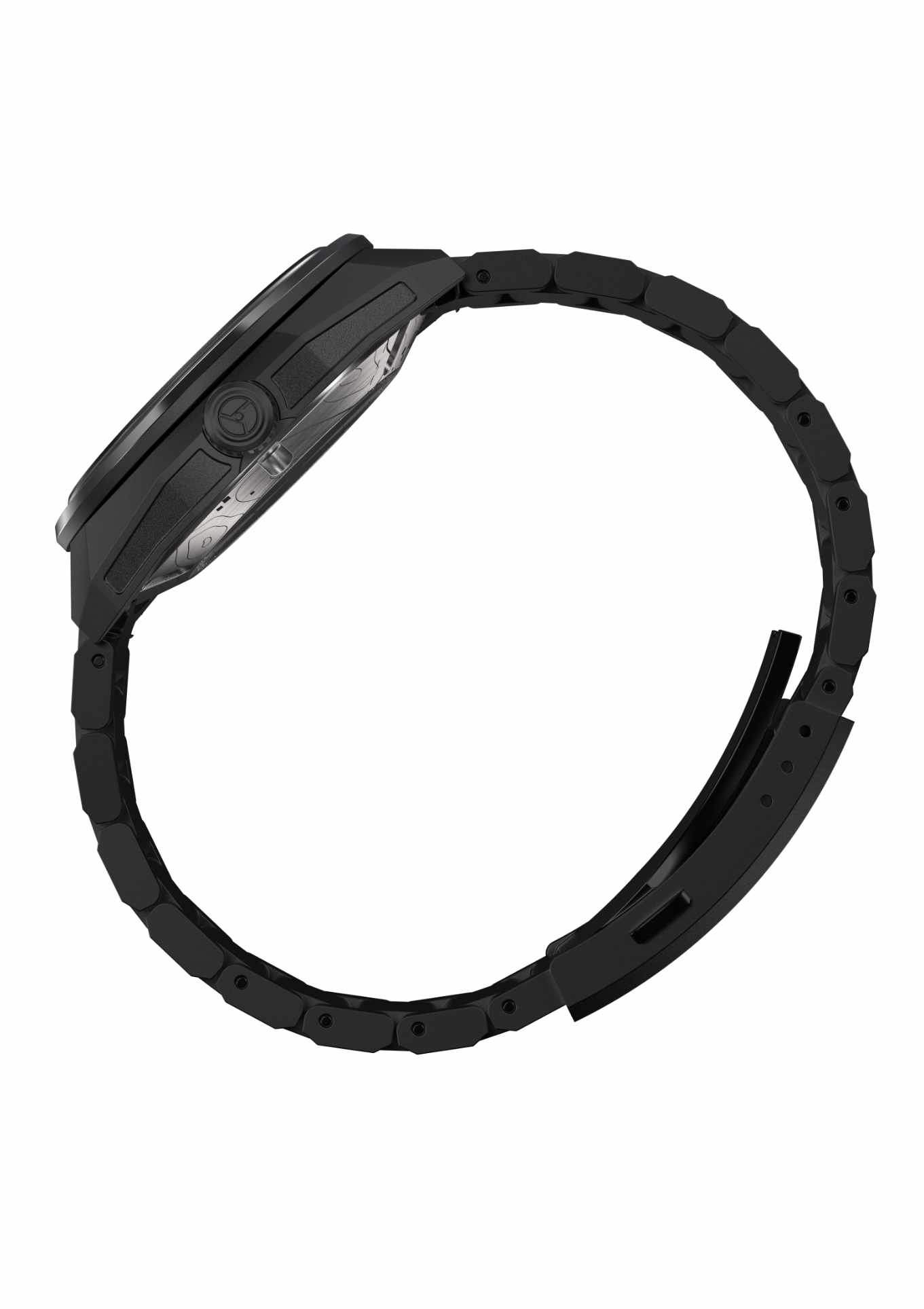 - Massives, kratzfestes Stahlband, DLC beschichtet, mit Schnellwechselsystem, verschraubten Gliedern (inkl. Schraubenzieher) und Sicherheitsschließe mit Feinverstellung in 3 Positionen