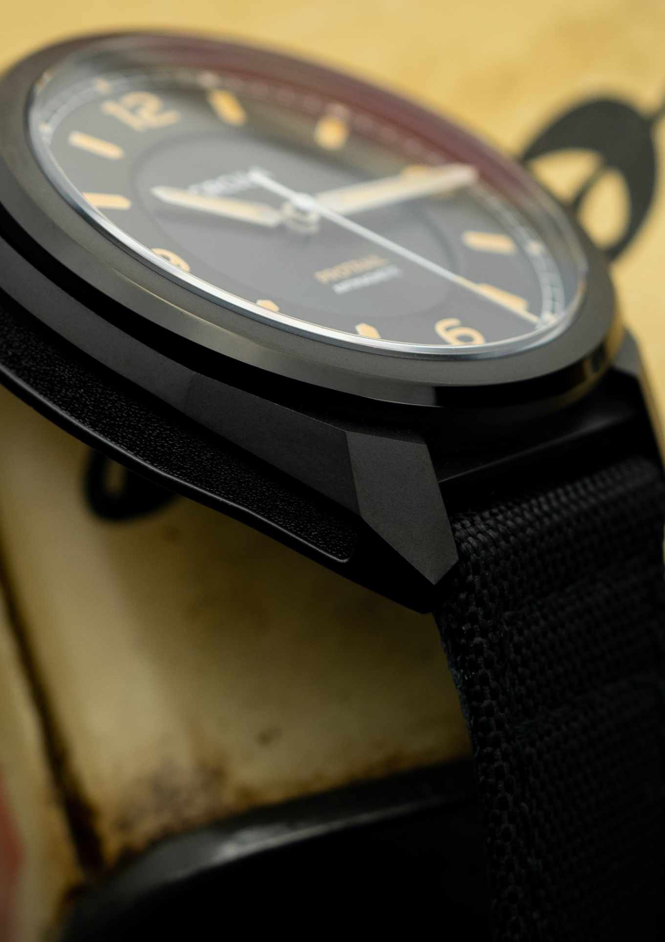 Die klar definierten linearen Flächen fangen das Licht auf unterschiedliche Weise ein und erzeugen beeindruckende visuelle Effekte. Das gesamte Design des Gehäuses verzichtet auf geschwungene Flächen und unterstreicht den strengen Look. Nur der seitliche Blickwinkel zeichnet eine subtile Kurve von einer Bandanlage zur anderen und sorgt für den hohen Tragekomfort der Facet. Die Krone greift auffällig das stilisierte Zahnrad des neuen Markenlogos auf.
