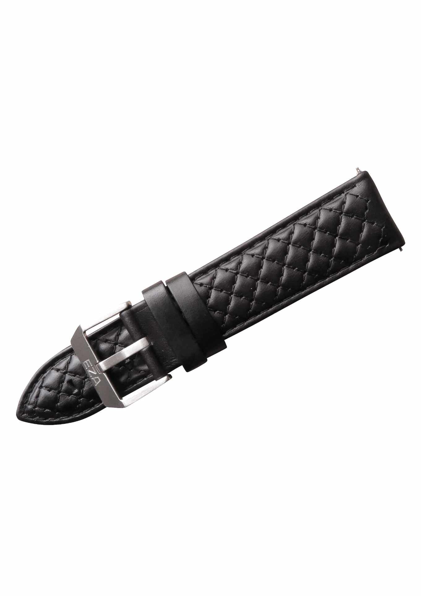 - Schwarzes Vintage-Lederband mit gestepptem Rautenmuster