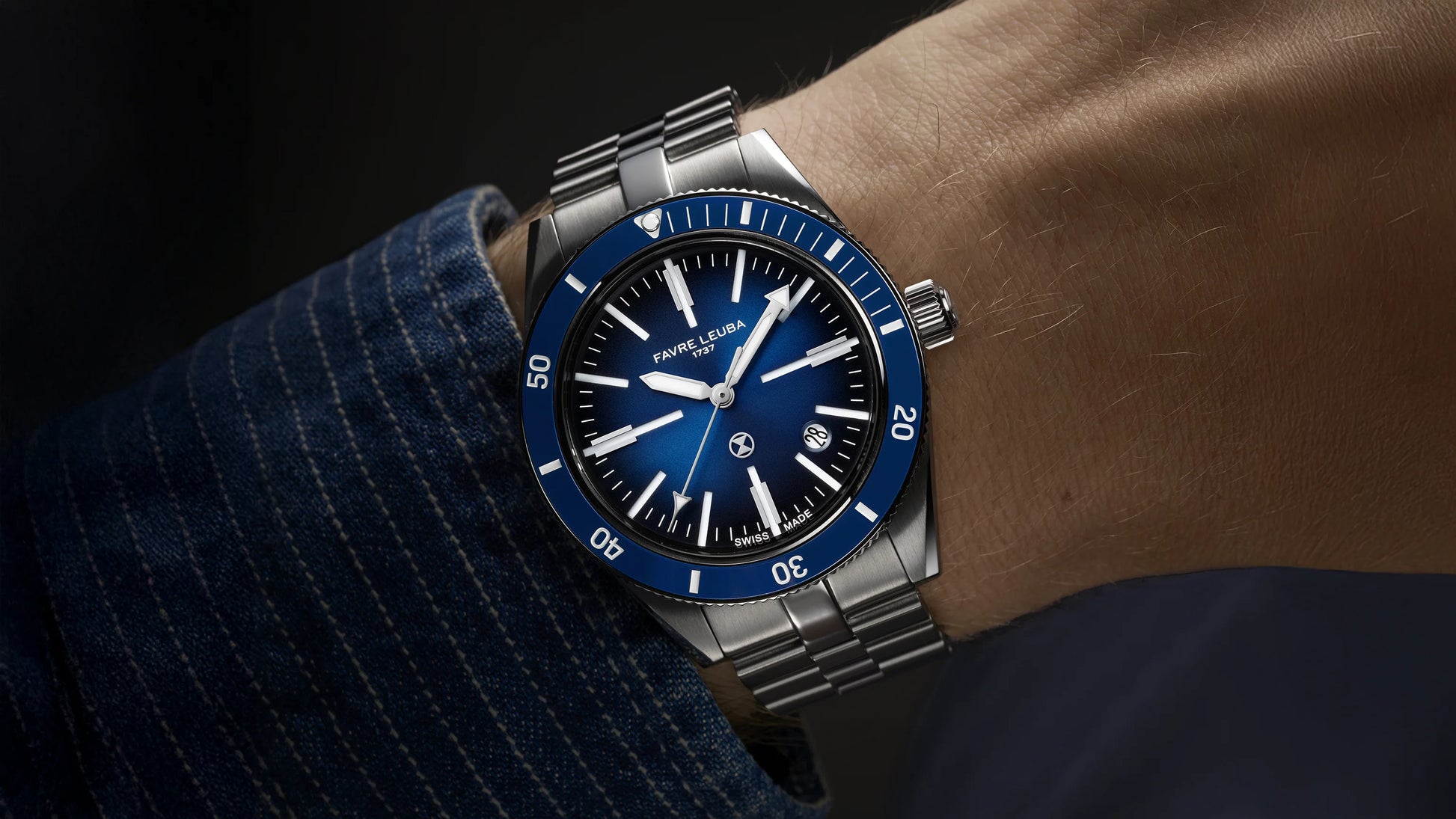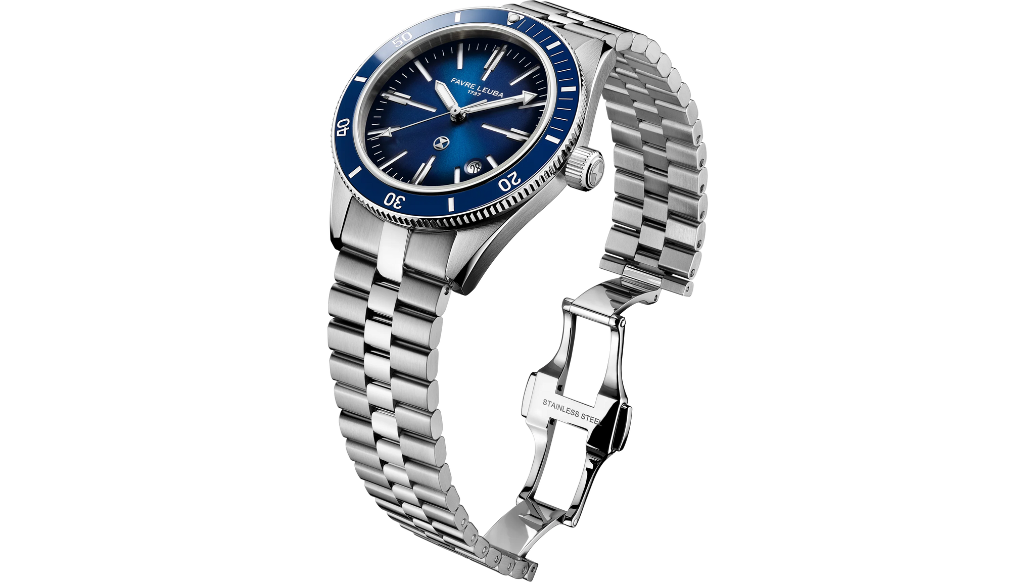 Jeweils mit Favre Leuba Logo und einfachem Schnellwechselsystem für werkzeugfreien Bandwechsel
