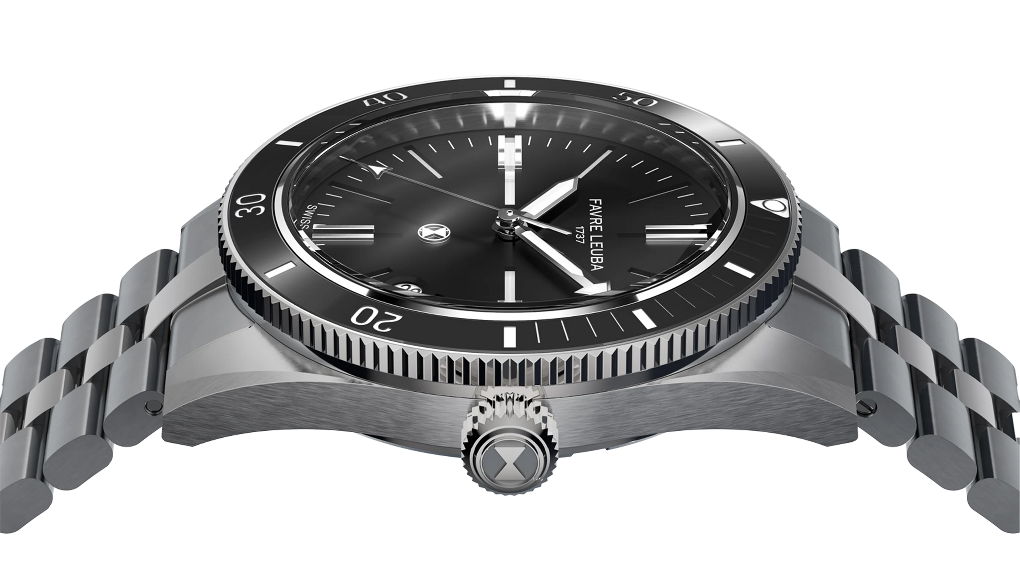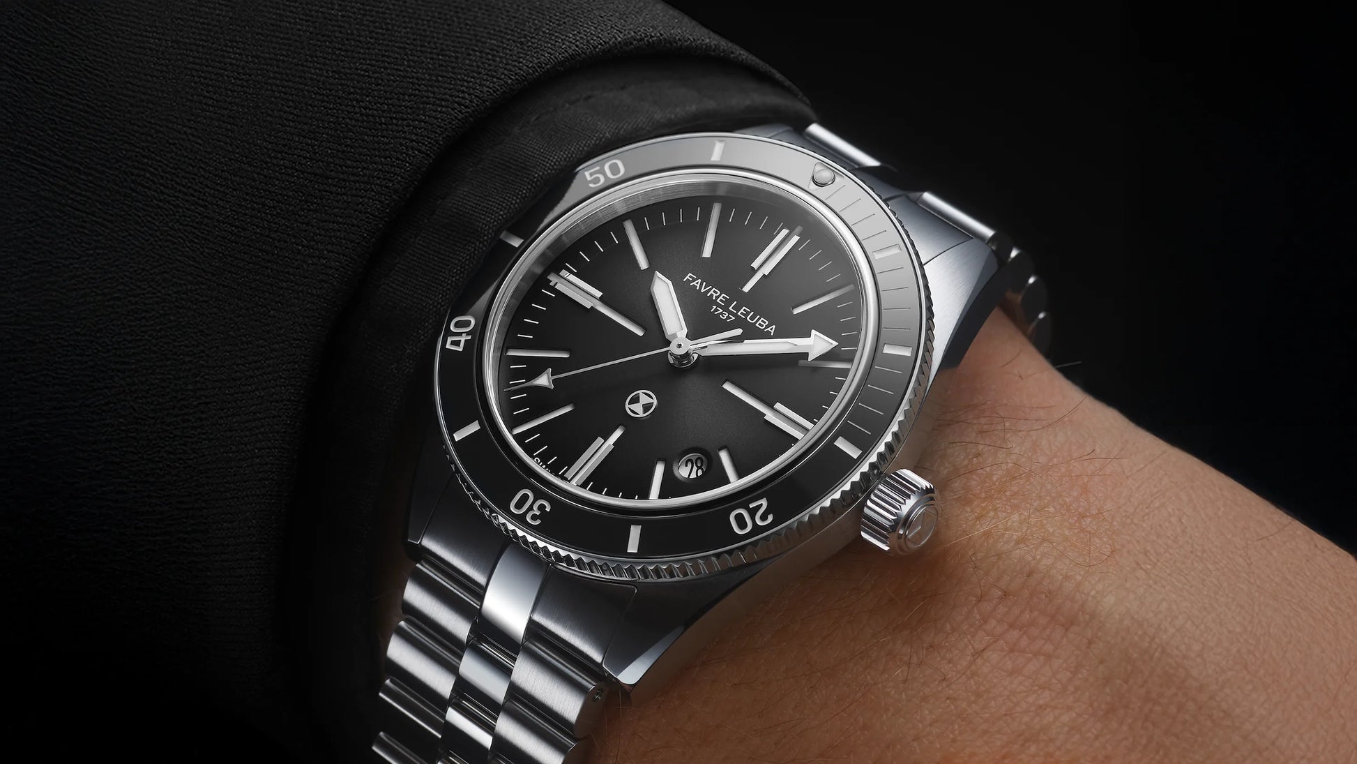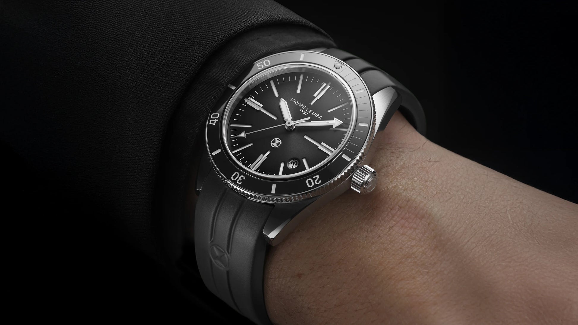 Jeweils mit Favre Leuba Logo und einfachem Schnellwechselsystem für werkzeugfreien Bandwechsel