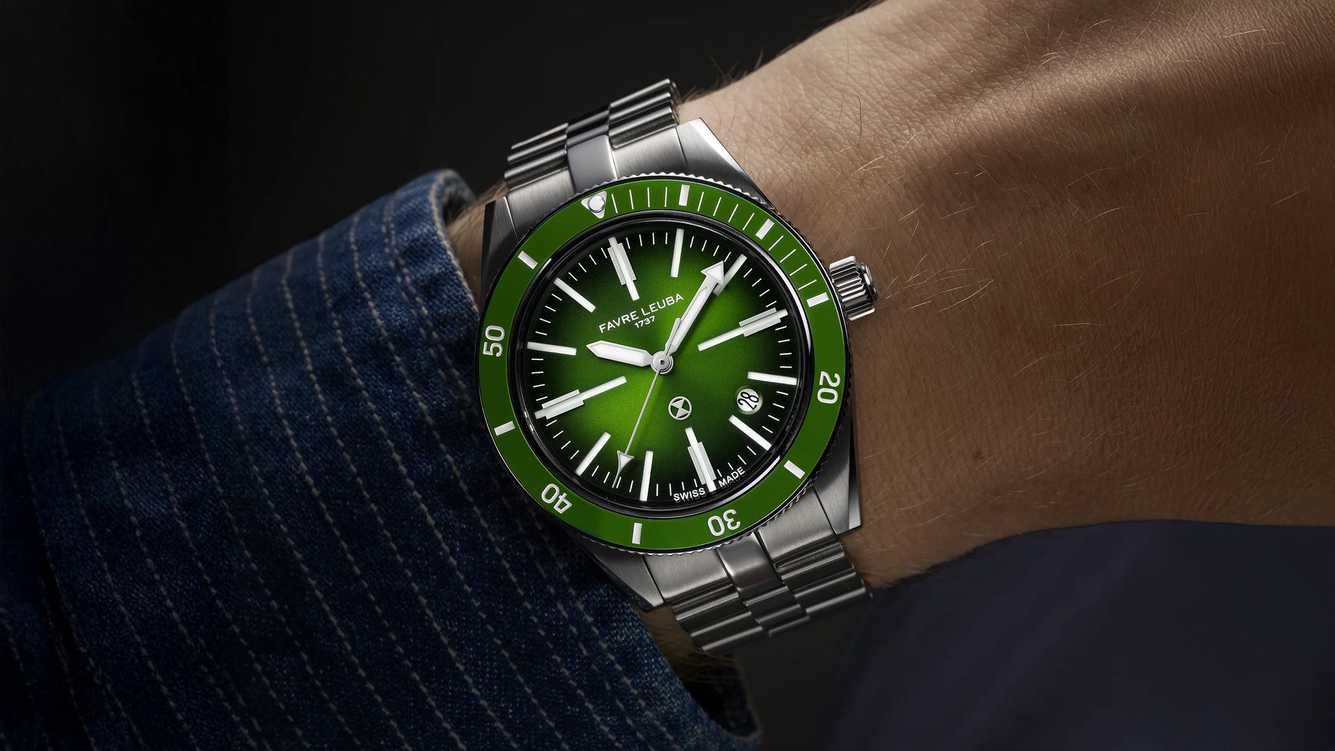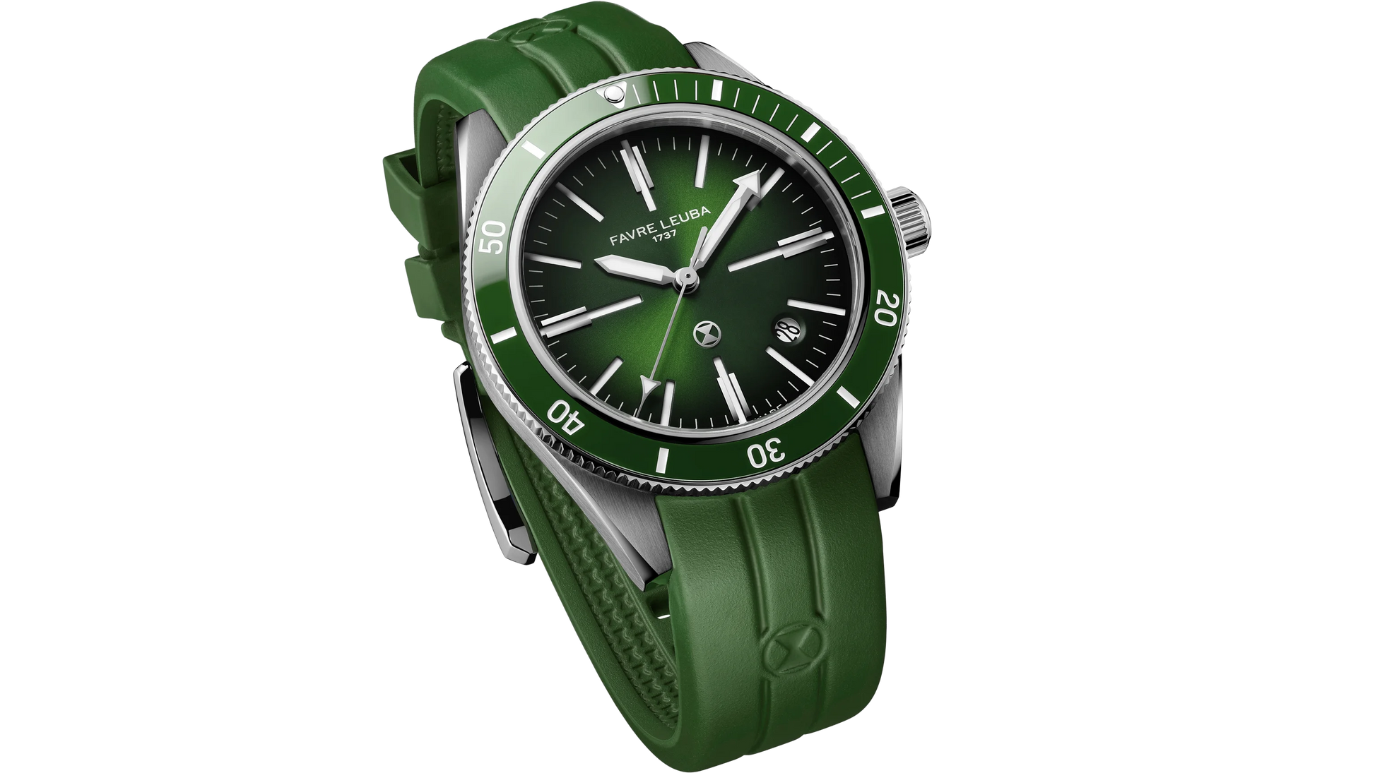 Jeweils mit Favre Leuba Logo und einfachem Schnellwechselsystem für werkzeugfreien Bandwechsel