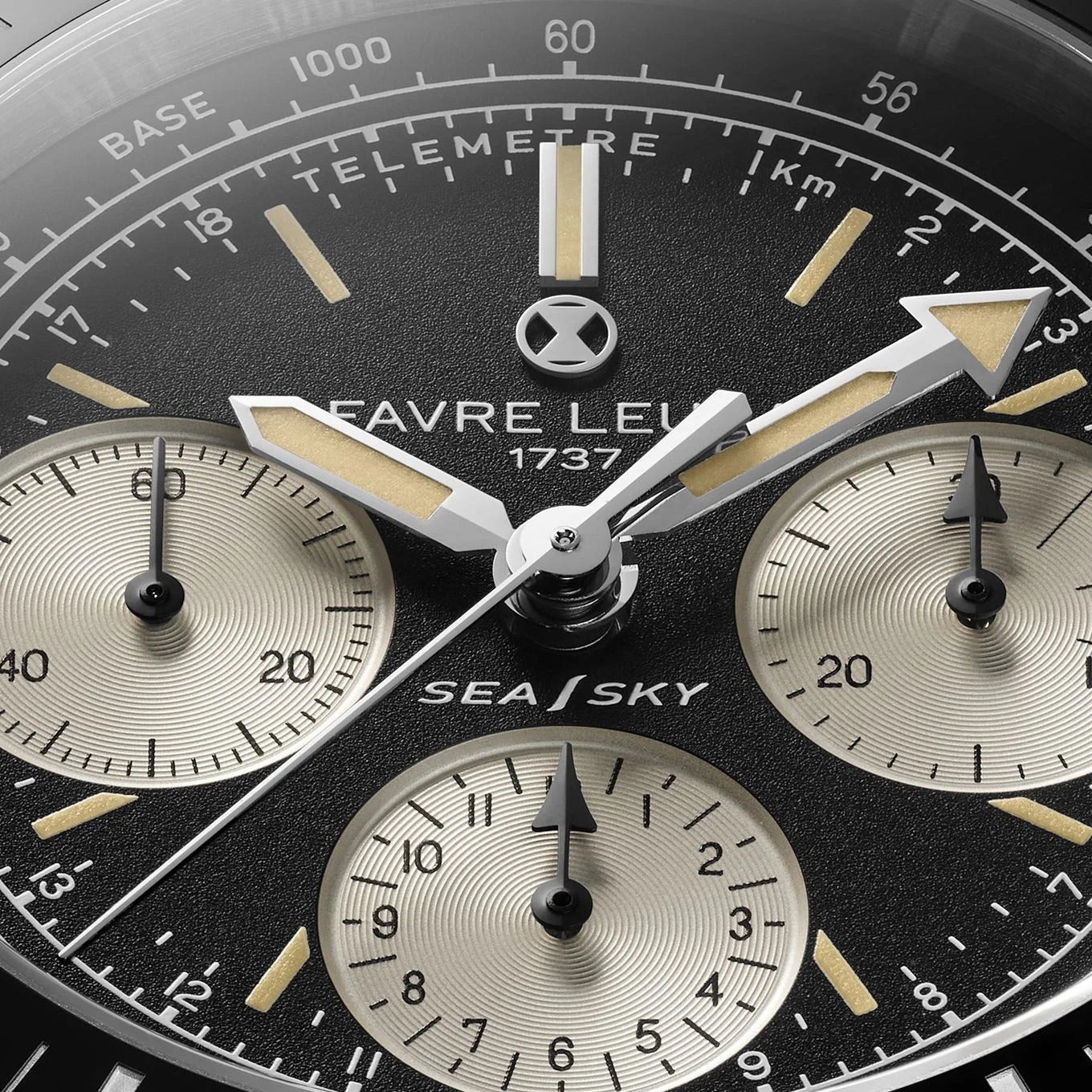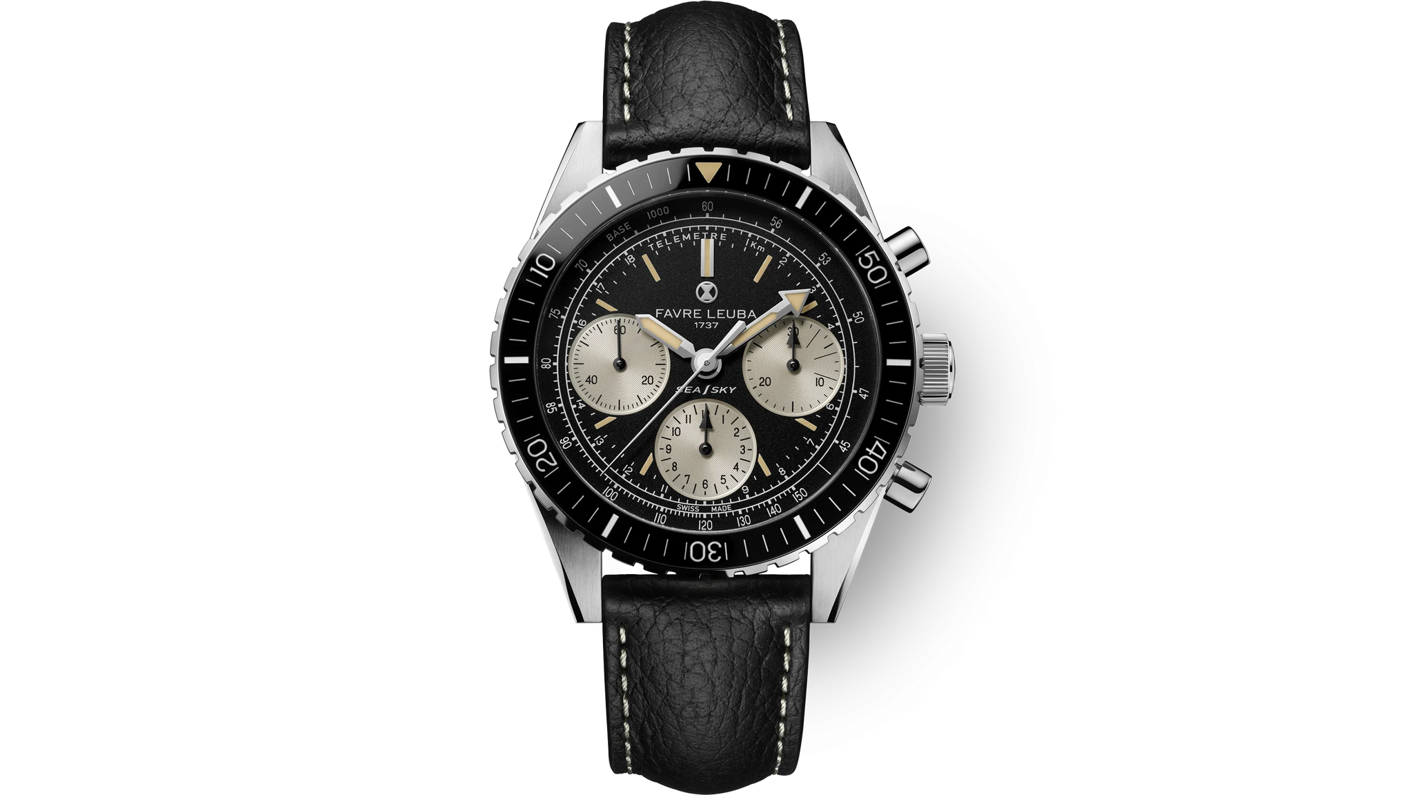 Die Favre Leuba Sea Sky Revival ist ein Schweizer Automatik-Chronograph im Vintage-Stil. Mit Tri-Compax-Layout, Tachymeter und Telemeter vereint sie klassische Ästhetik mit moderner Präzision und sportlicher Funktionalität.