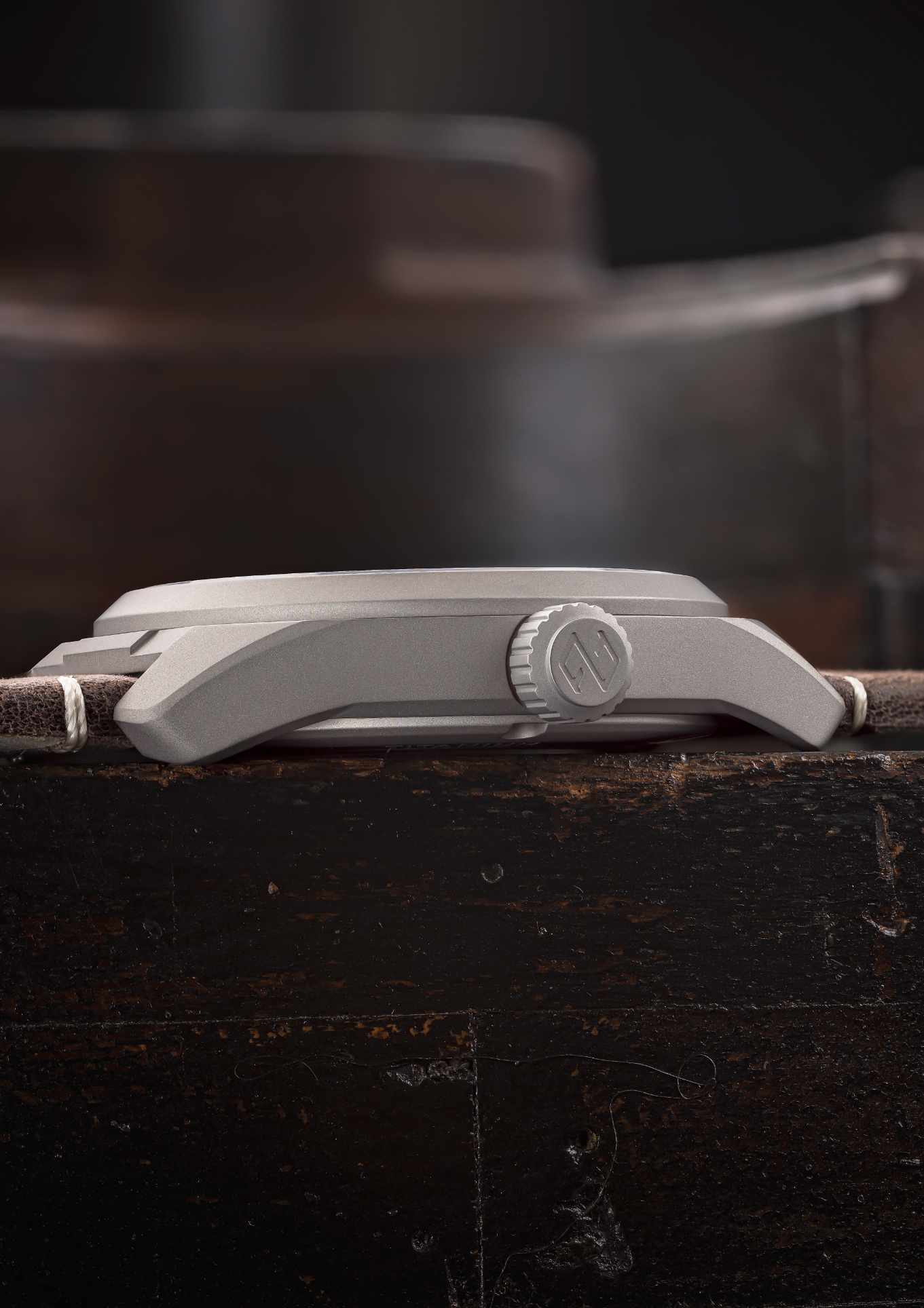 - Gehäuse, Boden und Krone aus Titan Grade 2